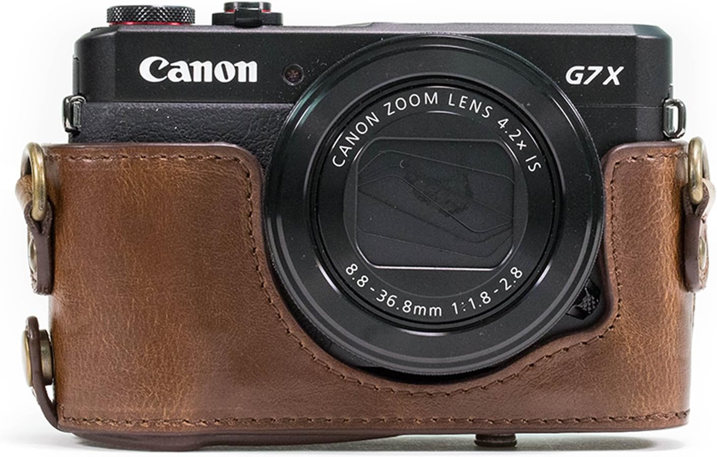 Flap lets you use camera without removing it from case Lightweight, comfortable design with shoulder strap for easy carrying Soft interior protects camera from scratches and dings Available in black, dark brown, or light brown Compatible with Canon PowerShot G7 X Mark II