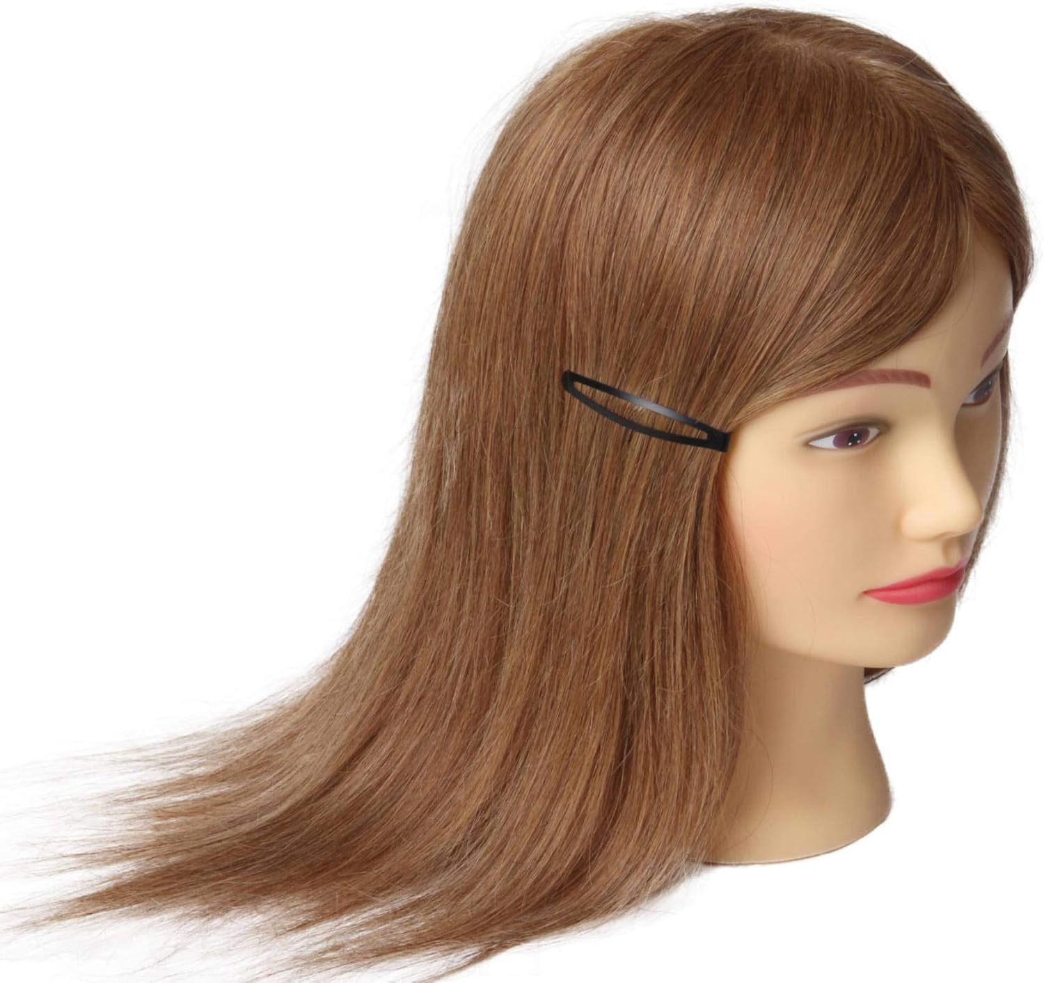 Mannequin Head With Human Hair Doll For 14 Inch Brown Hair Styling Braiding Curly Pre Stretched Extension Holder Manikin Mixed Hair Care For Girls And Kids Make Up Practice And Train Cosmetology