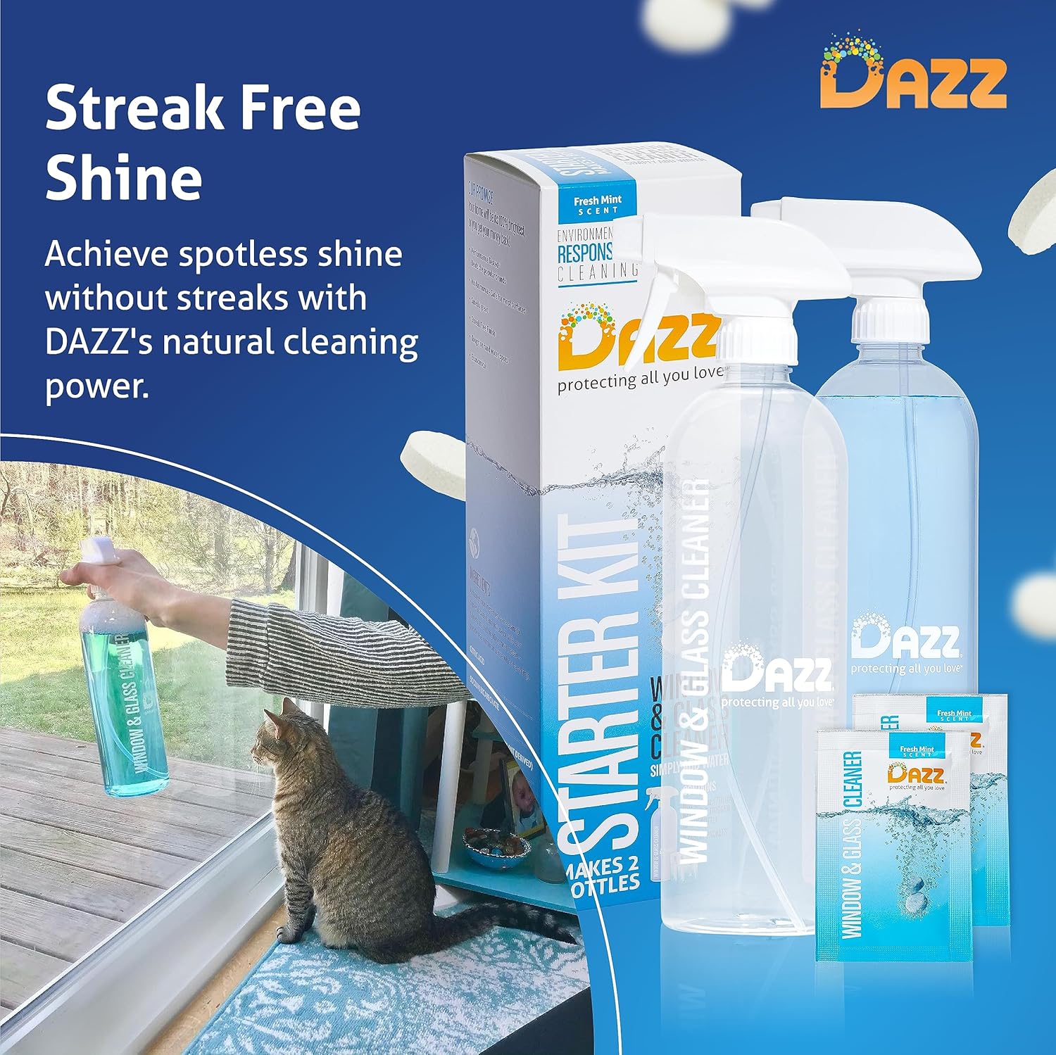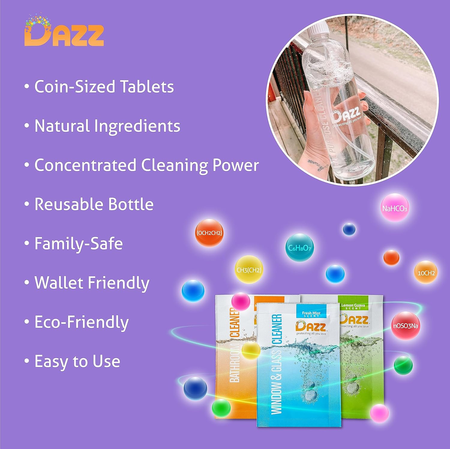 Dazz Whole House Starter Kit (3 Reusable Spray Bottles, 6 Refills) Natural All Purpose Cleaner, Glass and Window Cleaner, and Bathroom Cleaner – Eco Friendly, Non Toxic