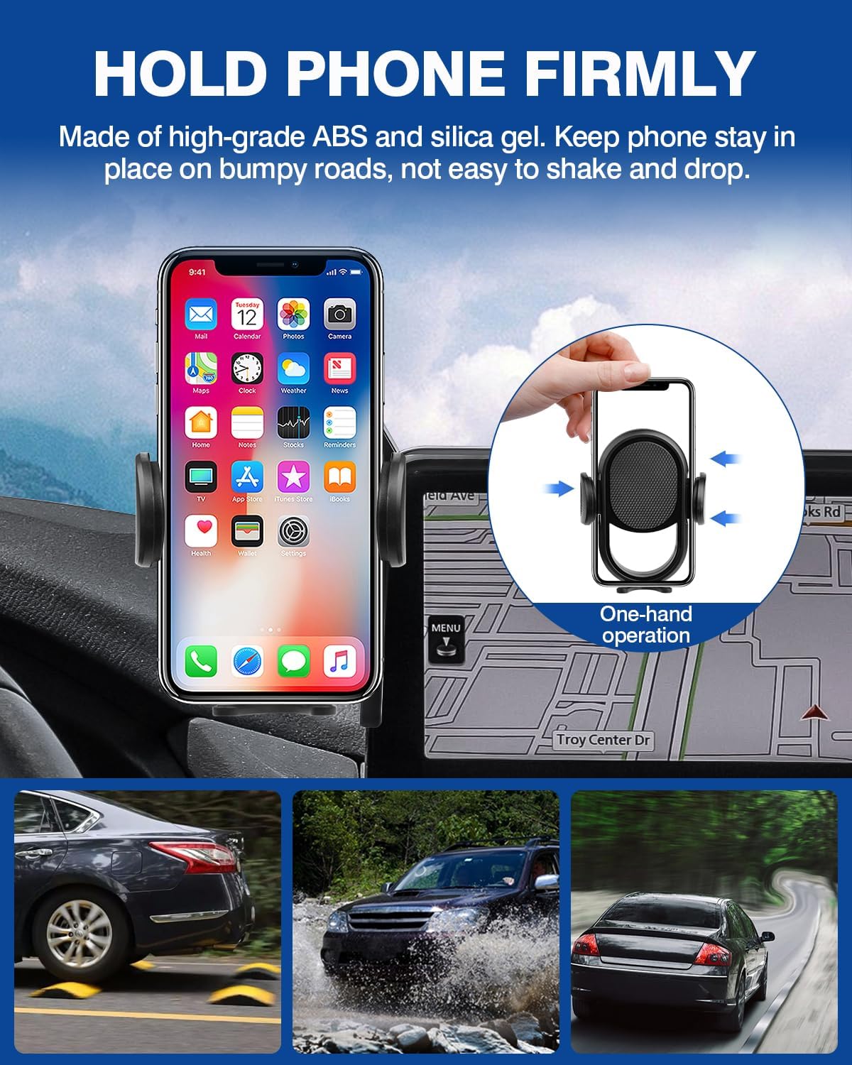 Upgrade New Design—Different from ordinary cell phone holders, ours has an integrated design of touchscreen and phone stand, which does not block the air outlet. Besides, the base mounted on the screen can adjust the height of the phone mount.