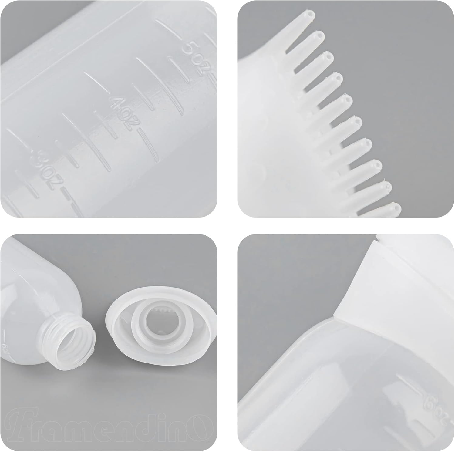 Framendino, 4 Pack Clear Root Comb Applicator Bottles 6 Oz Plastic Hair Dye Bottle Hair Oil Squeeze Bottle with Graduated Scale for Hair Care Hair Dye