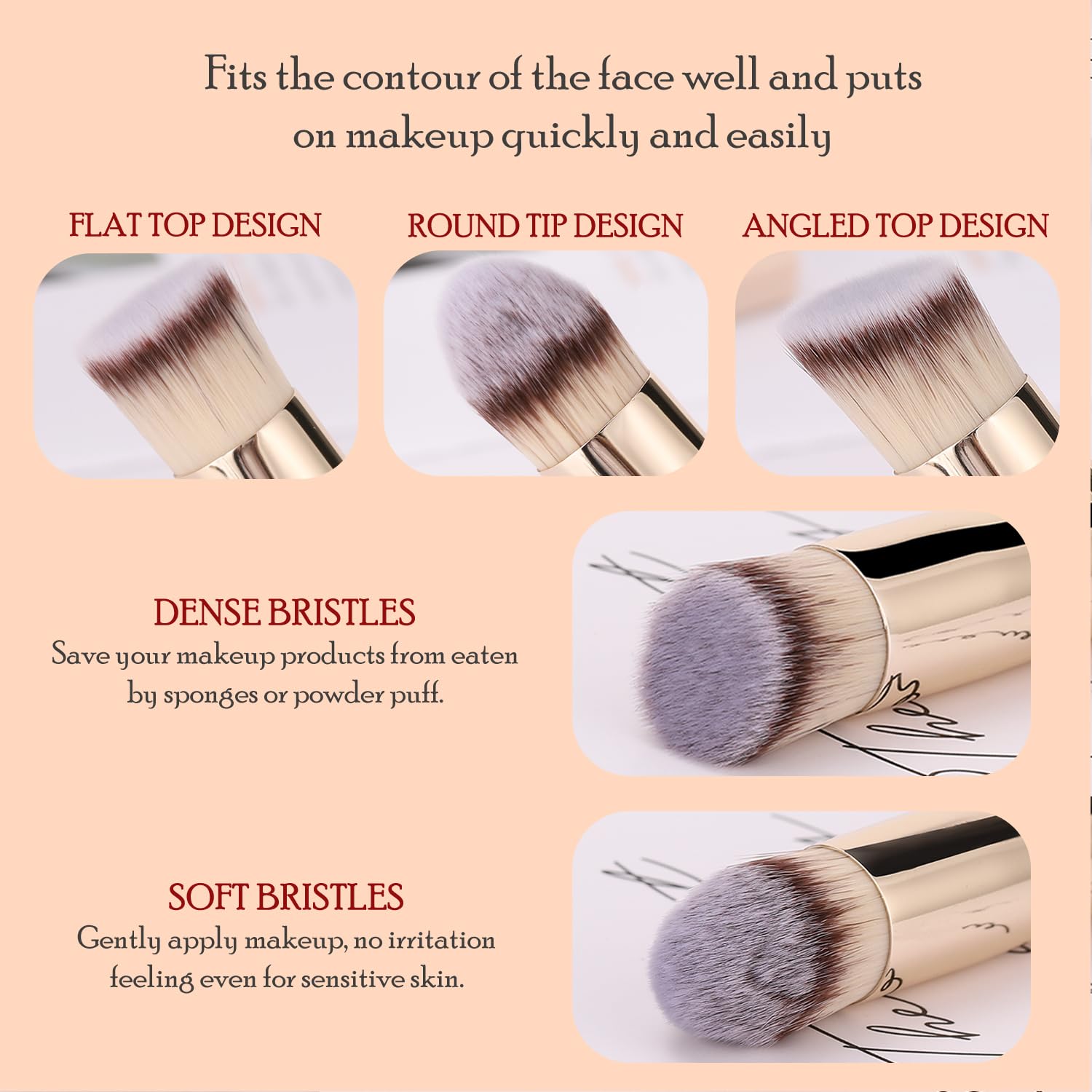 2) The bristles of this brush are a little harder than those of regular brushes. Designed to hold and press on your setting powder, your makeup stays in place all day,and blend your liquid cream foundation,concealer,your base makeup in a flawless finish.
