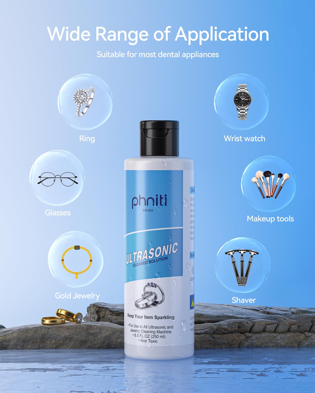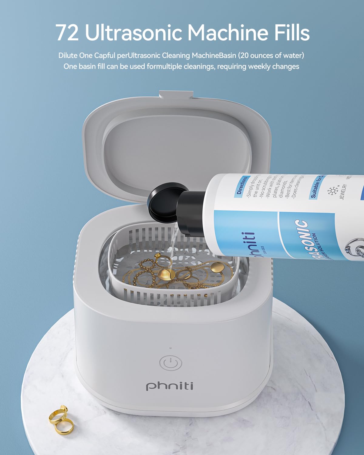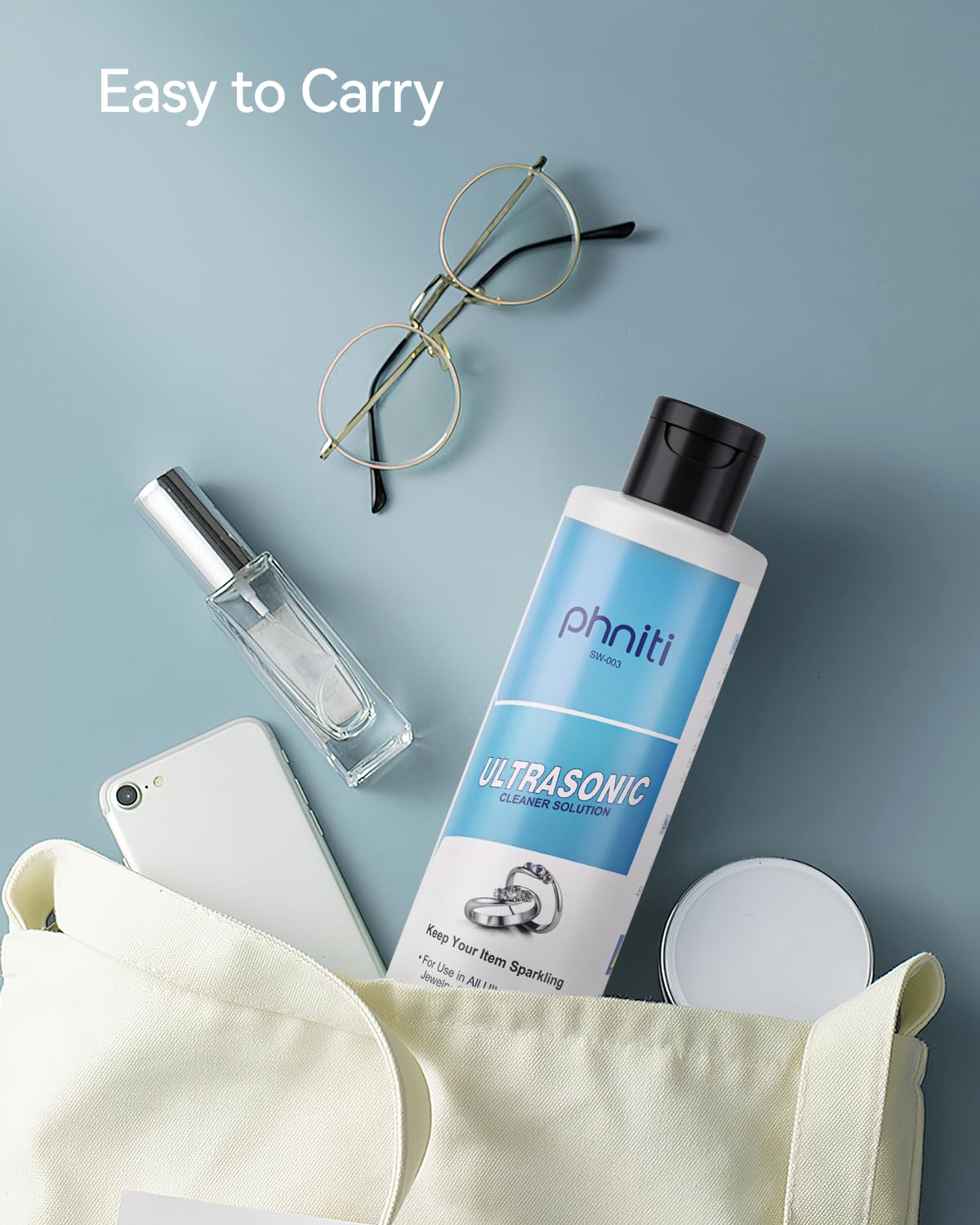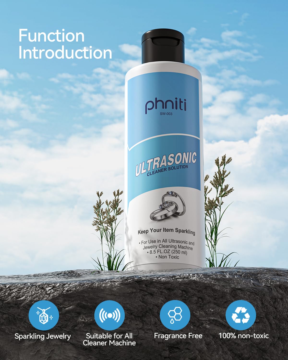 Ultrasonic Jewelry/Eye Wear Cleaning Solution Concentrate 8.5 FL OZ (250ml) (Pack of 2), Phniti Ultrasonic Jewelry Cleaner Solution for Silver, Gold, Diamonds, Gemstones, Sterling Silver