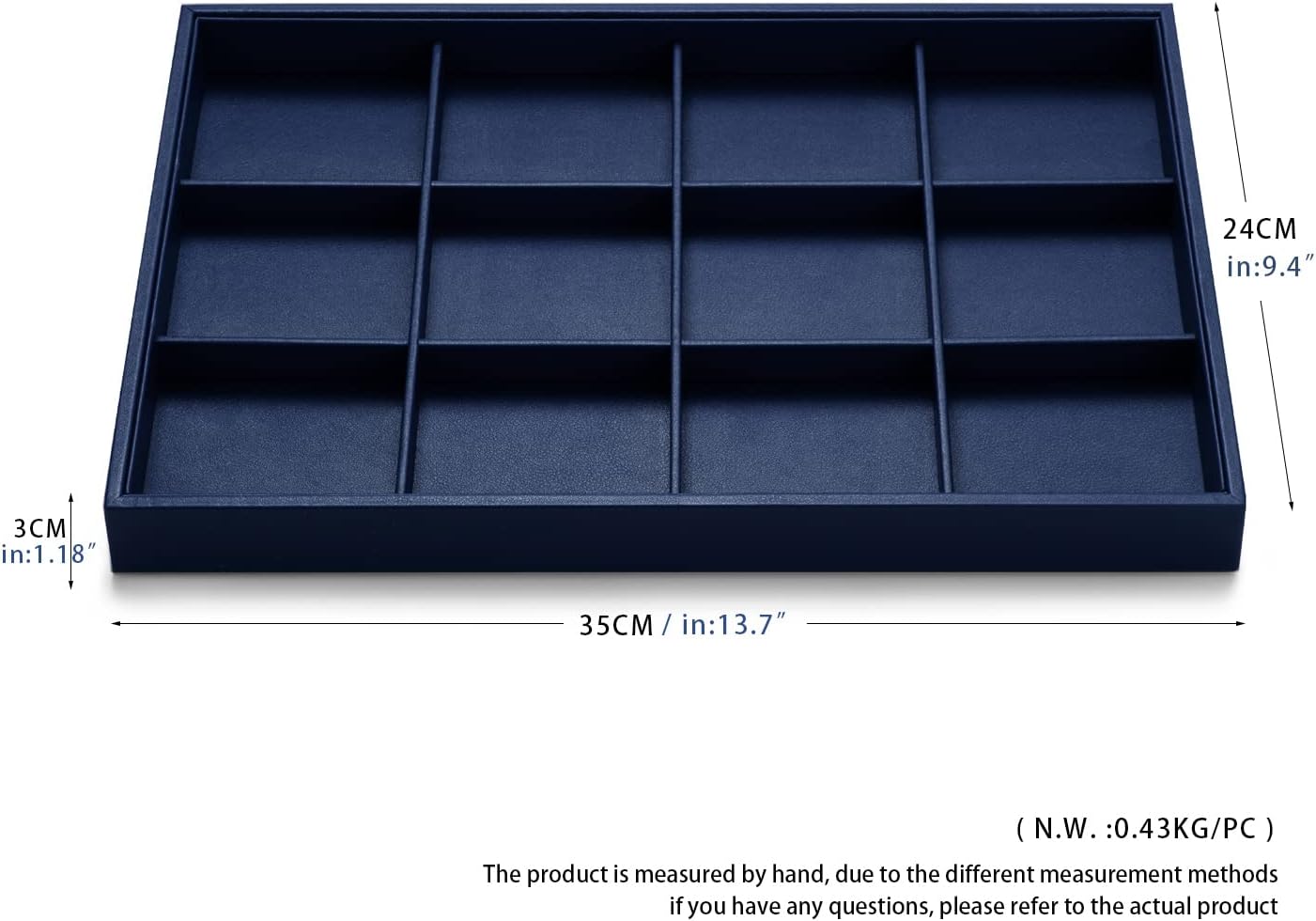Oirlv Stackable Premium Leather Jewelry Trays 12 Grid Jewelry Drawer Organizer Trays Bracelet Earrings Watches Showcase Display Organizer