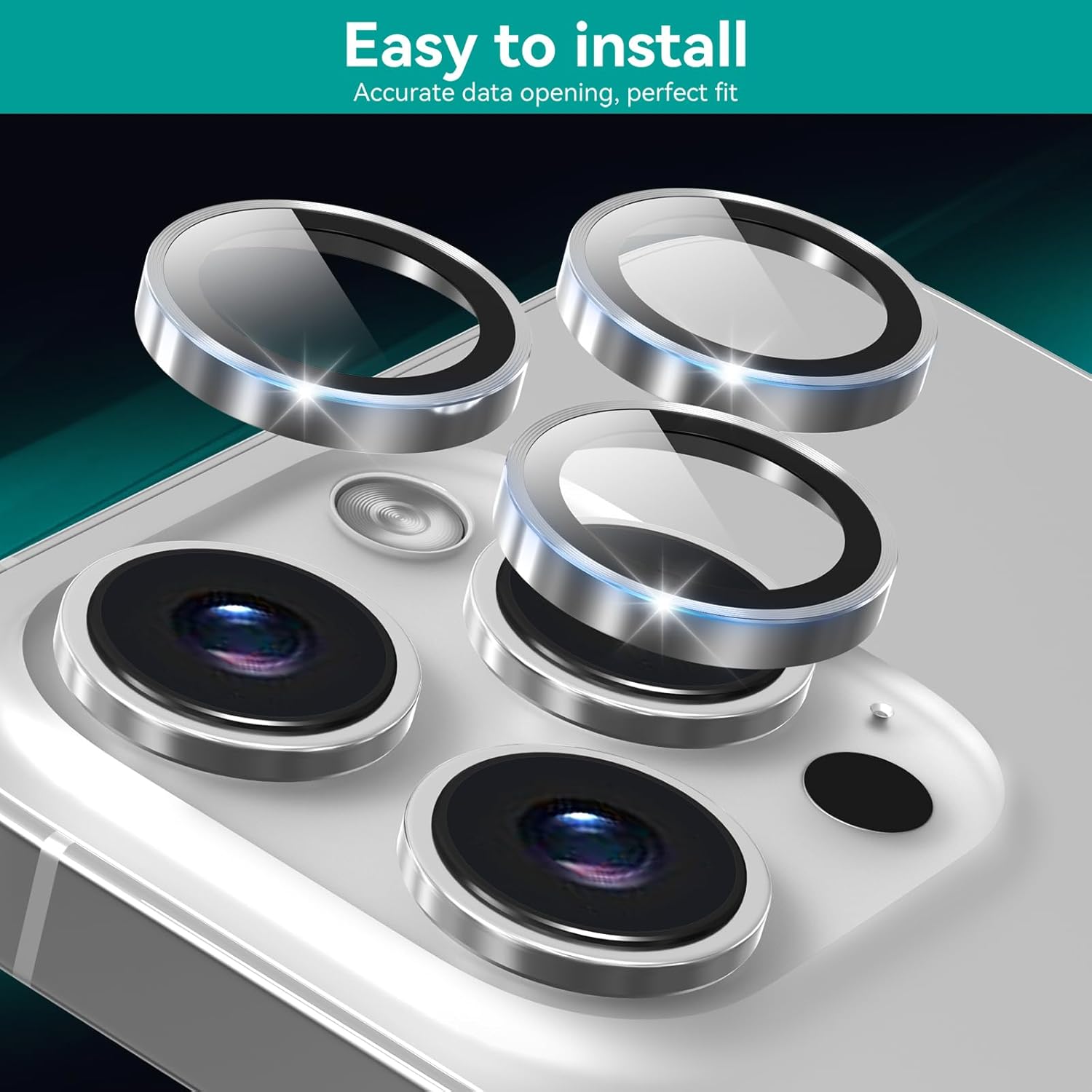 【Highly Optically Transparent】This camera lens protective ring is designed according to the original size of the iPhone 15 Pro/15 Pro Max.We choose 9h hard tempered glass and 99.99% optical-grade light transmittance. No fog, No residue, No blue light when using flash, No influence to your new phone original image performance.