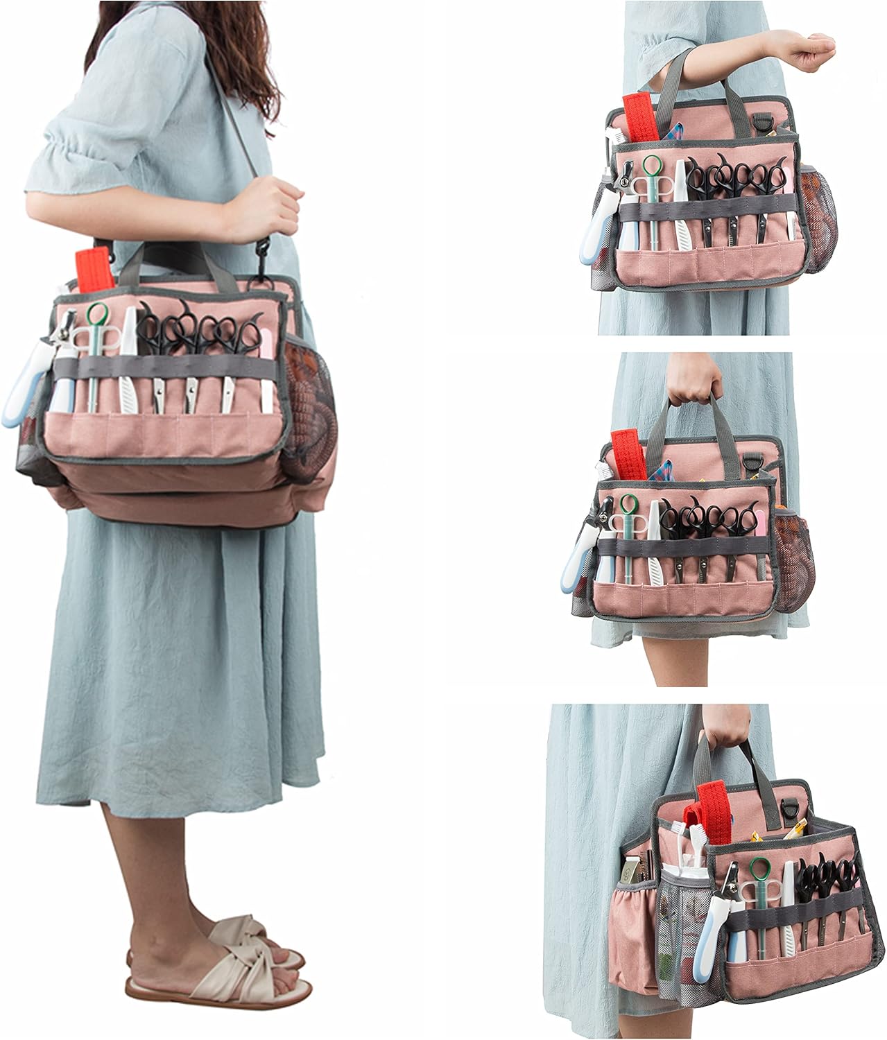 KISLANE Pet Grooming Carrying Bag for Outgoing, Shoulder Cat Grooming Tools Storage Bag, Travel Dog Grooming Supplies Organizer for Pets Grooming Kit and Dog Wash Shampoo Accessories(Bag Only) (Pink)