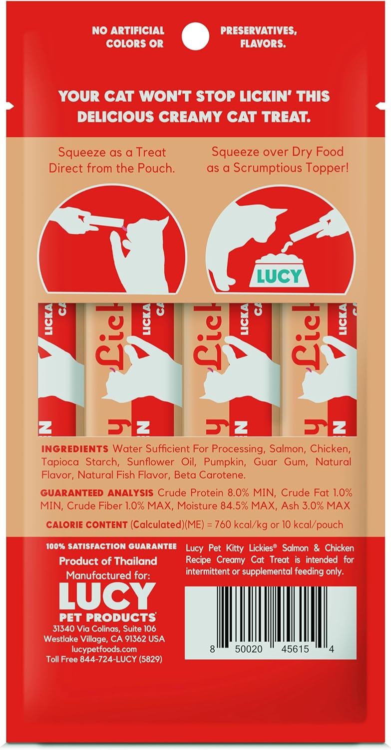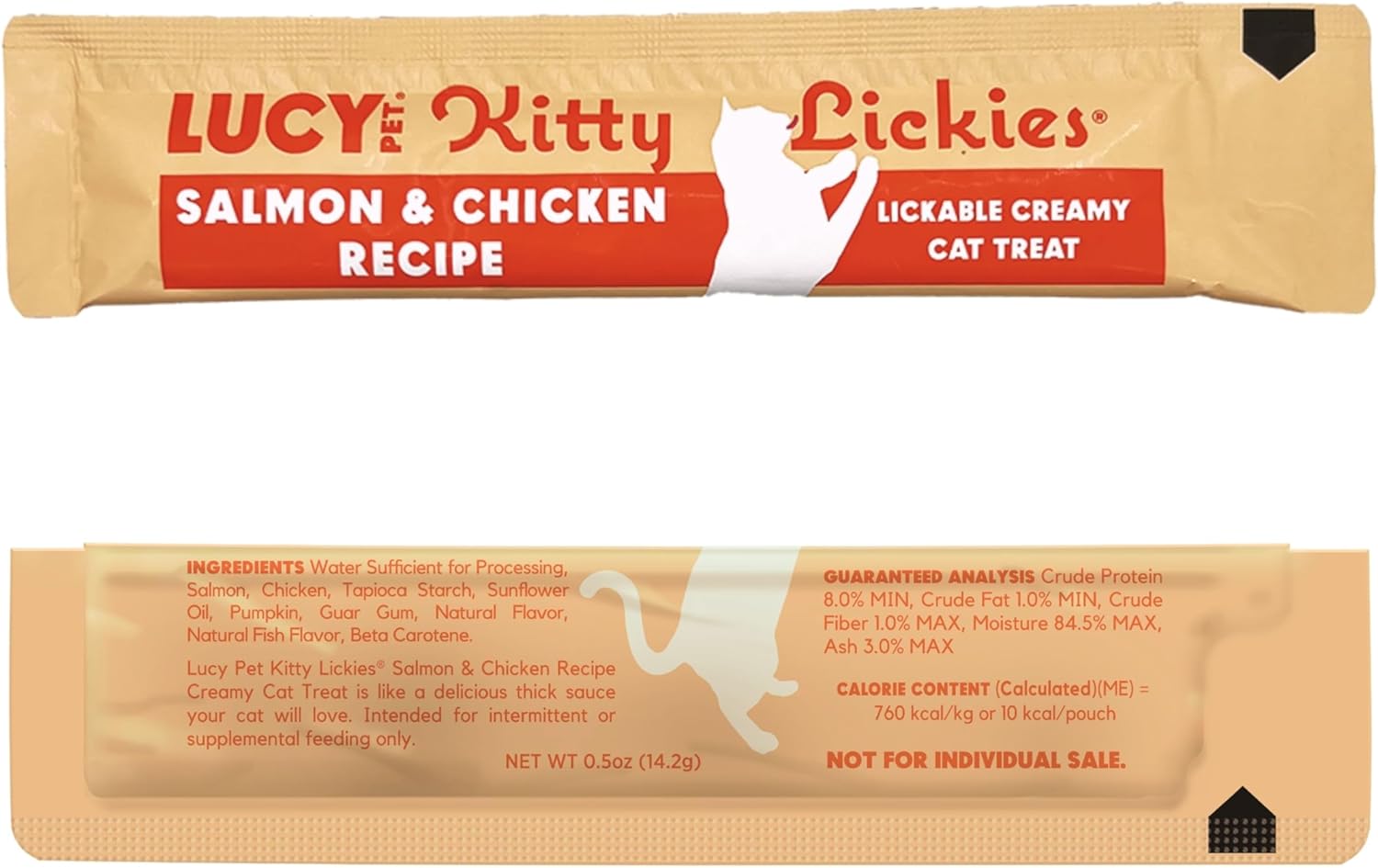 Lucy Pet Products Kitty Lickies Creamy Lickable Cat Treat, Salmon and Chicken Recipe, 2oz.