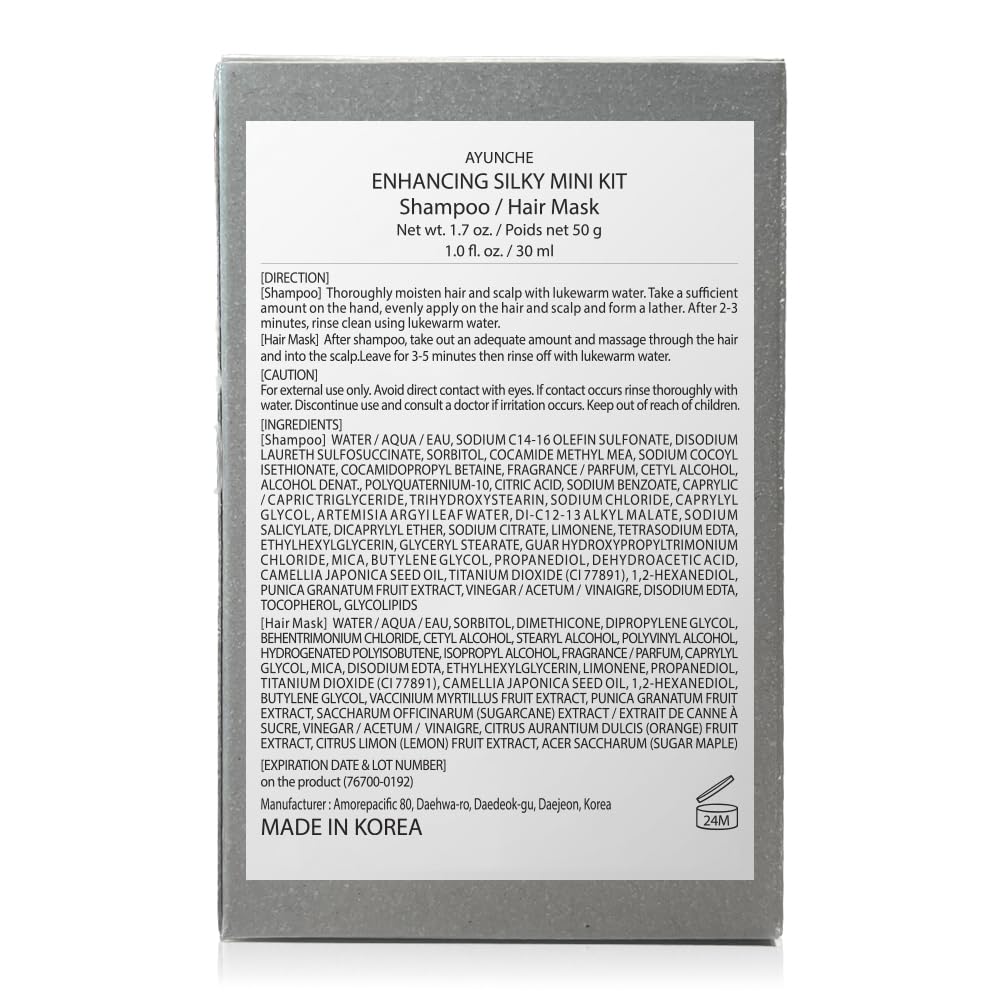 AYUNCHE Enhancing Silky Shampoo 1.76oz + Enhancing Silky Hair Mask 1oz Mini Kit [For Dyed & Tangled Hair] | No more Tangled Hair and Split Ends | Intensive Care for Damaged Hair | Korean Salon Brand