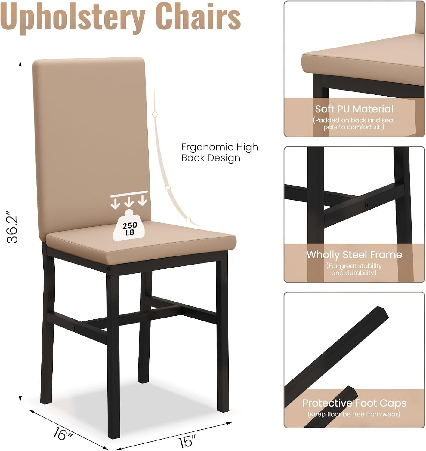 【Elegant Appearance】Modern appearance brings a contemporary atmosphere into your kitchen or dining room. What’s more, this samll kitchen table set for 4 includes a rectangular marble style table that features clean lines for a charming yet contemporary look. And the dining chairs adopted PU leather upholstered surface combines with a steel tube to build a simplified design of the chair to match your existing room decoration.