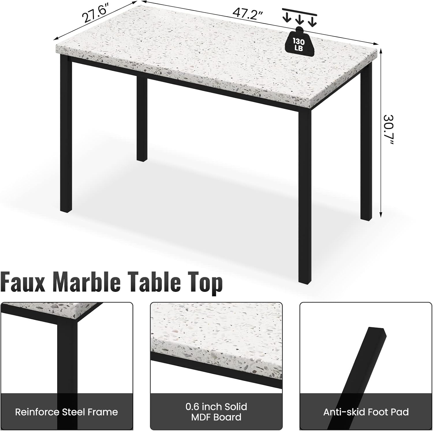 【Strong Structure】5-Piece faux marble dining table set is constructed of rust-resistant, heavy-duty steel frame and has been powder coated to increase life spans. Easy to clean with a damp cloth. In this way, this wholly hard steel frame constructed for great stability and durability. Anti-rust paint-coated steel tube makes you release of getting deformed/decayed.