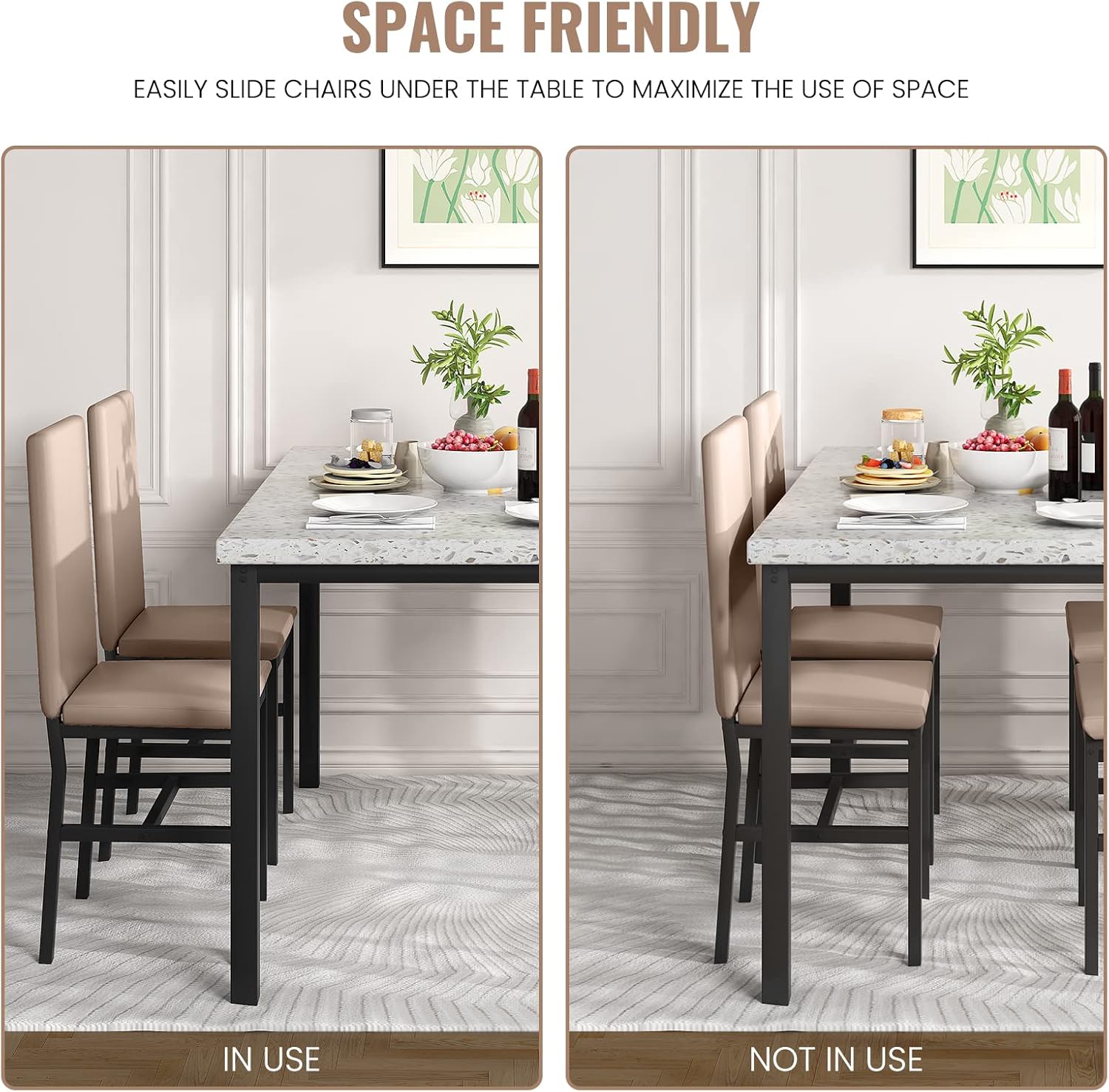 Hooseng Dining Table Set for 4, Space Saving Kitchen Table and Chairs Set of 4, 5 Pieces Faux Marble Dinette Dining Room Furniture Set with 4 Leather Chairs for Small Space, Khaki