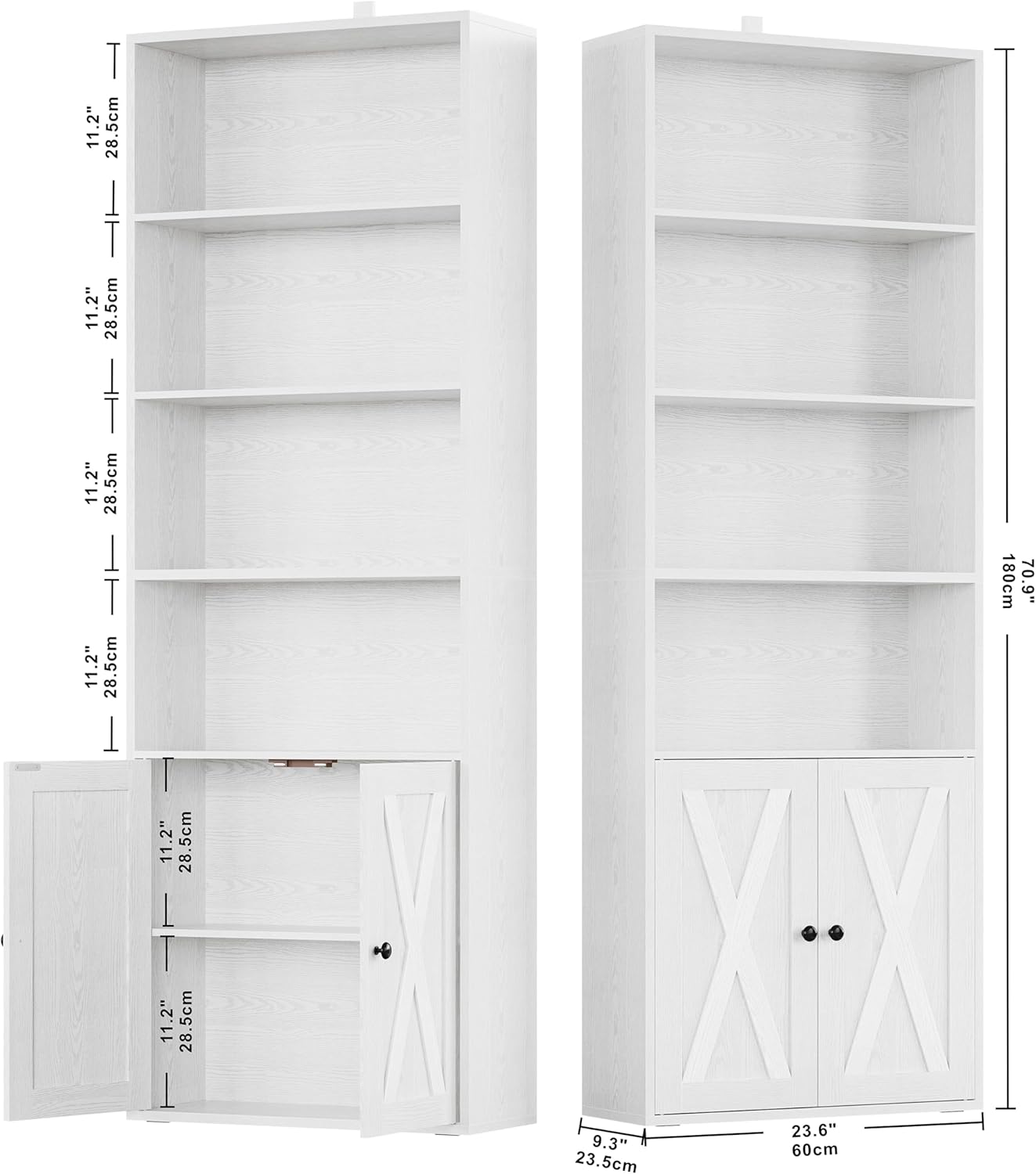Versatile 6-Tier Bookcase: Standing at dimensions of 23.82″W * 9.25″D * 70.87″H, this bookcase features clean lines that make it suitable for any space in your home. It provides ample storage and can serve as a bookshelf, storage shelf, or display rack.