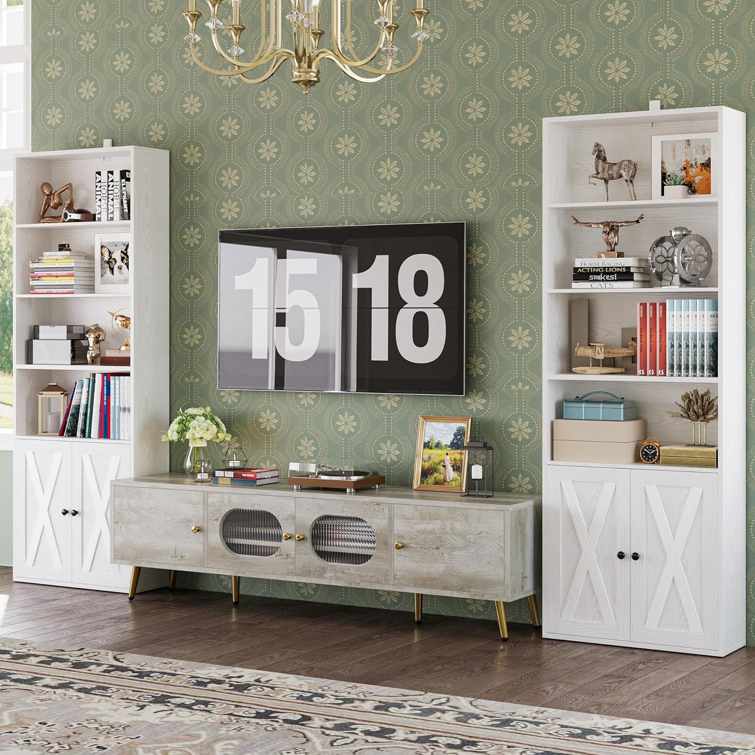 IRONCK Industrial Bookshelves and Bookcases with Doors Set of 2 Floor Standing 6 Shelf Display Storage Shelves 70 in Tall Bookcase for Home Office, Living Room