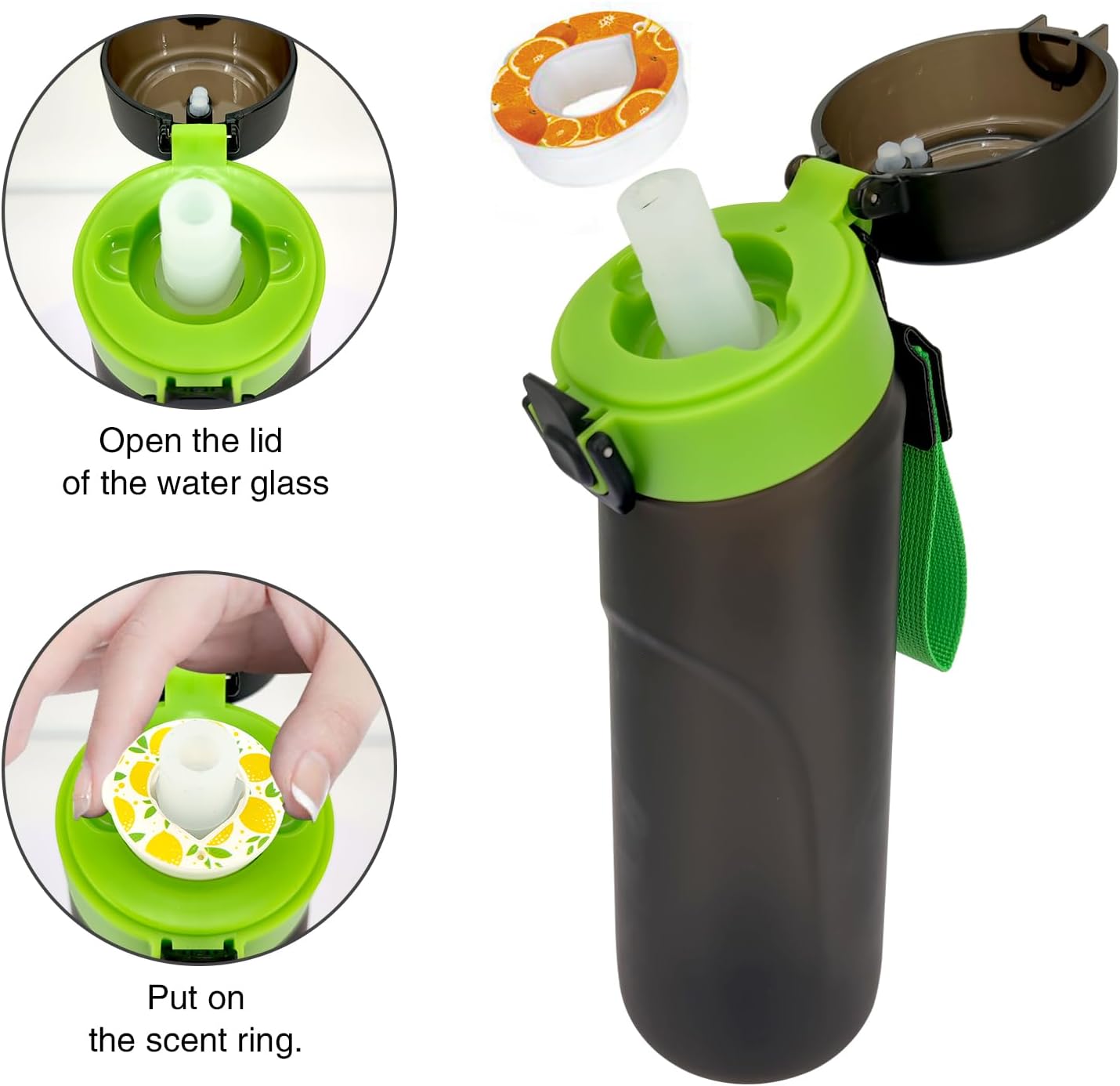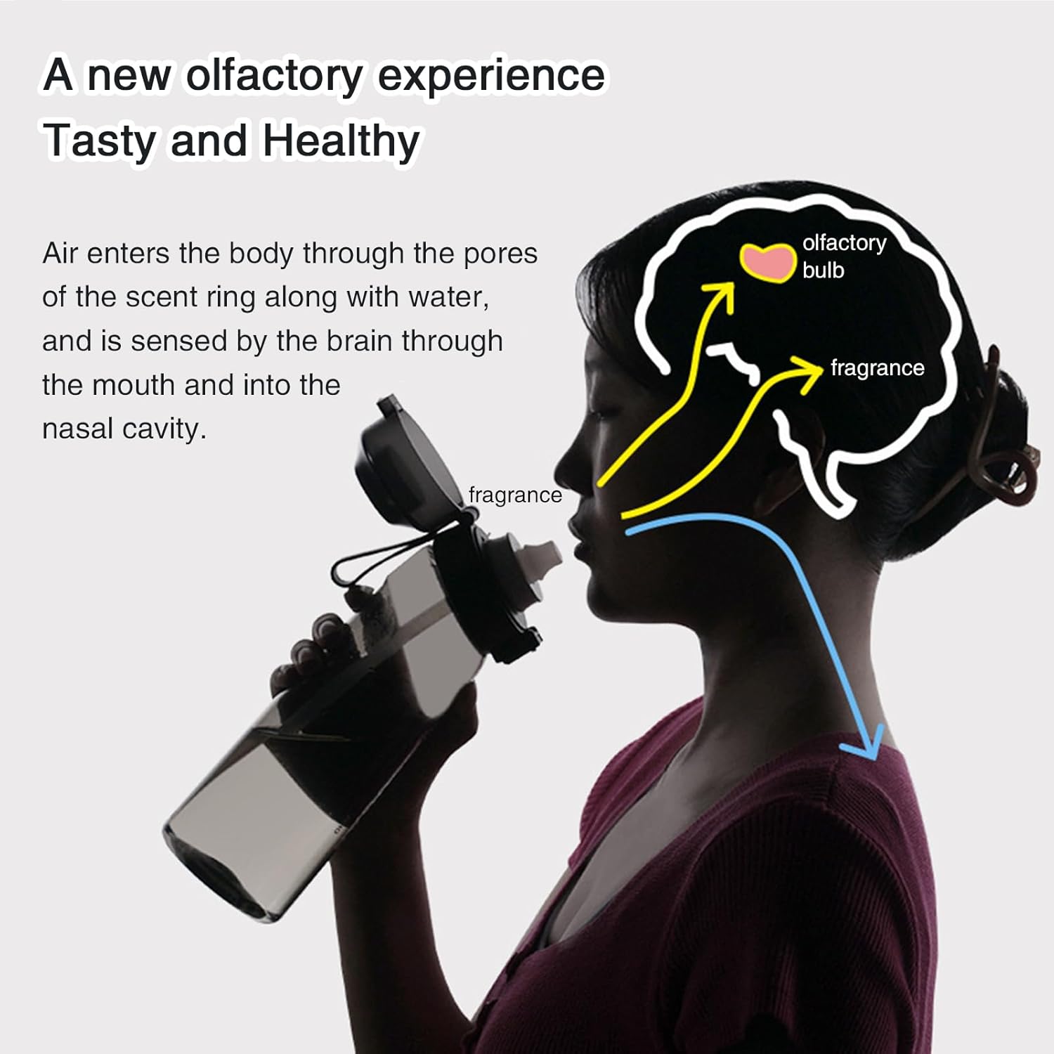 【0% SUGAR, 0% CALORIES】Air water bottle fragrance ring design adds refreshing fruit aroma to drinking water, making it more appetizing and enjoyable,Harnesses the power of scent and cognitive conditioning to make drinking water a more attractive and rewarding habit,so, This motivational air water bottle helps reduce calorie and sugar intake from other beverages, leading to lower risk of obesity and related health issues