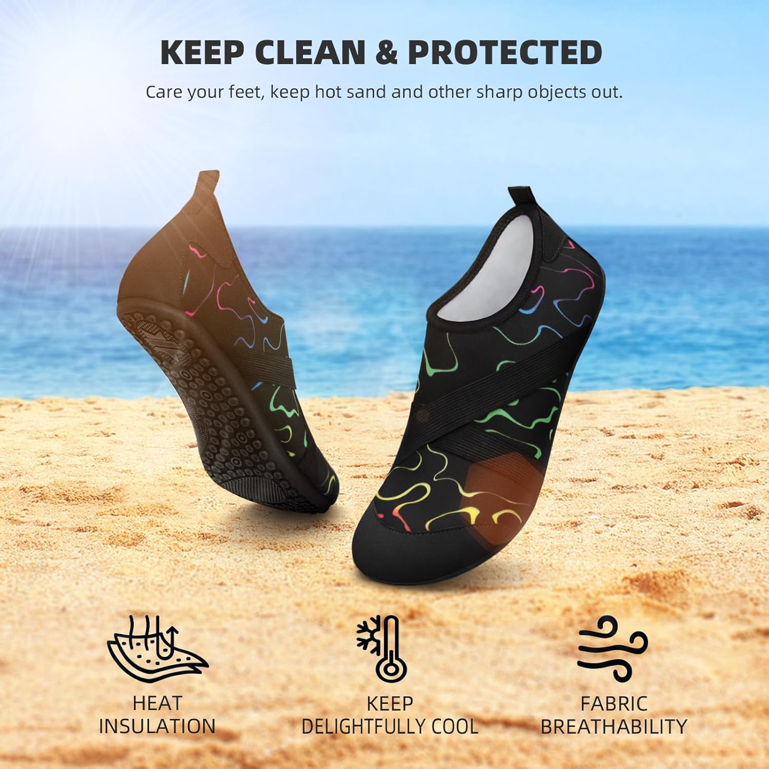 Athmile water socks are made of breathable,quick-dry and elastic fabric which perfectly fits your feet.