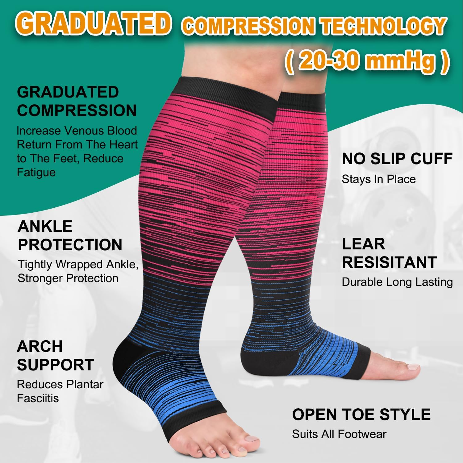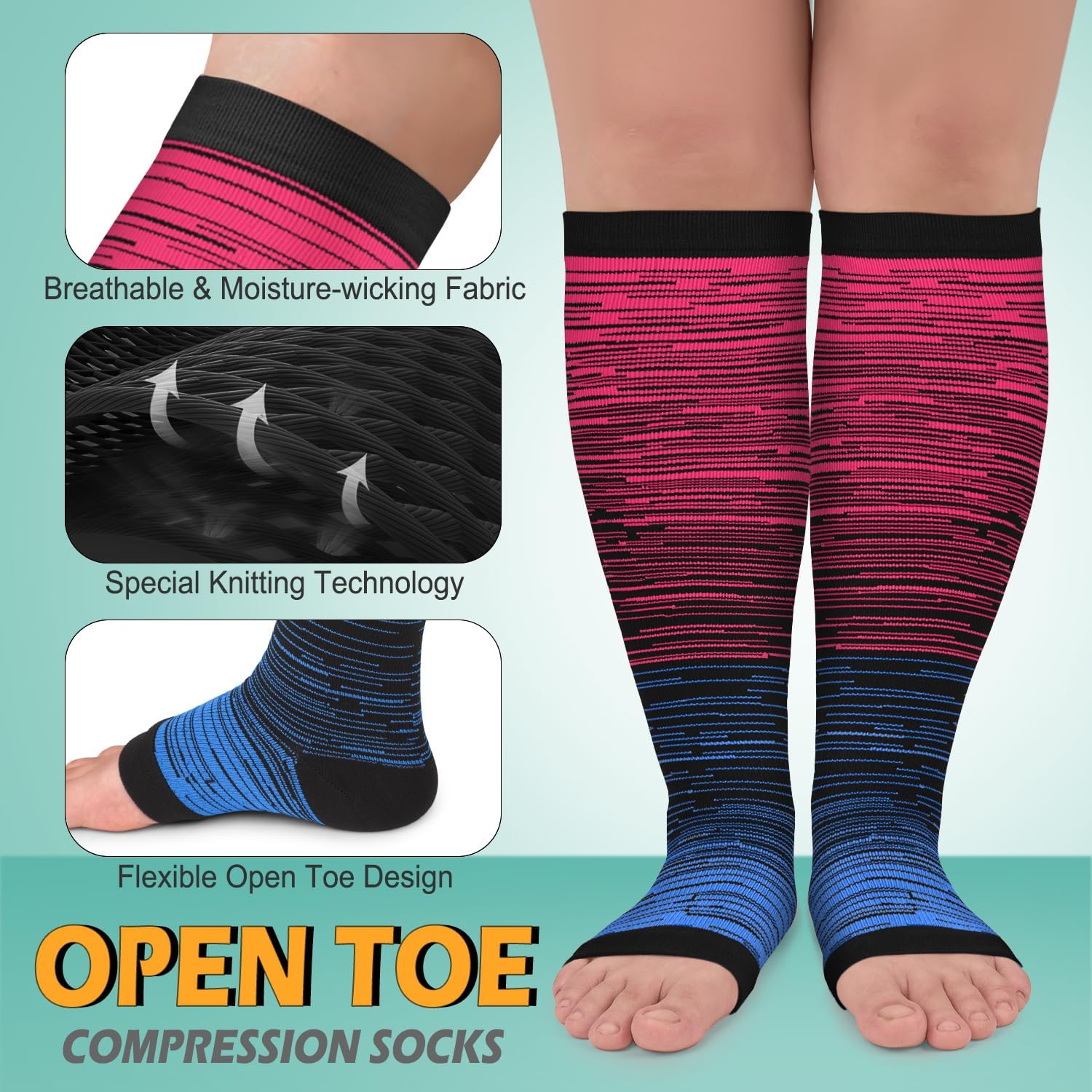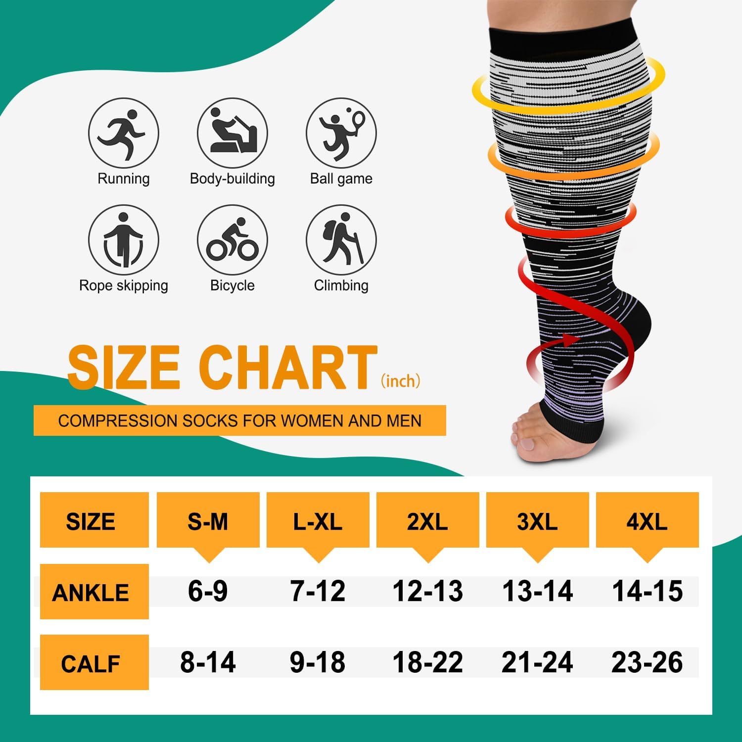 👨‍⚕️MORE SIZE CHOICES – Diu Life updates the size of Open Toe Compression Socks from S to 4XL. Knee High calf compression sleeves are breathable and made of durable excellent compression fabric. They are recommended by doctors and preferred by trainers, With seamless woven construction, it fit calf with no loss of compression. The open toe design helps fit feet of various shapes.