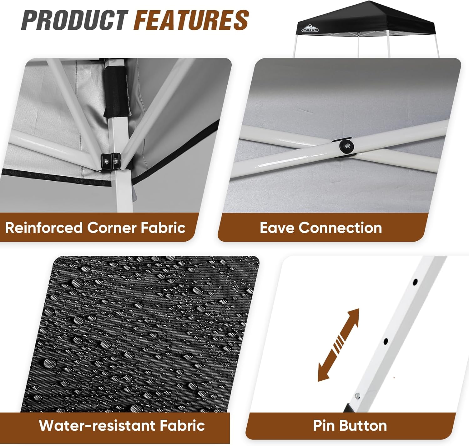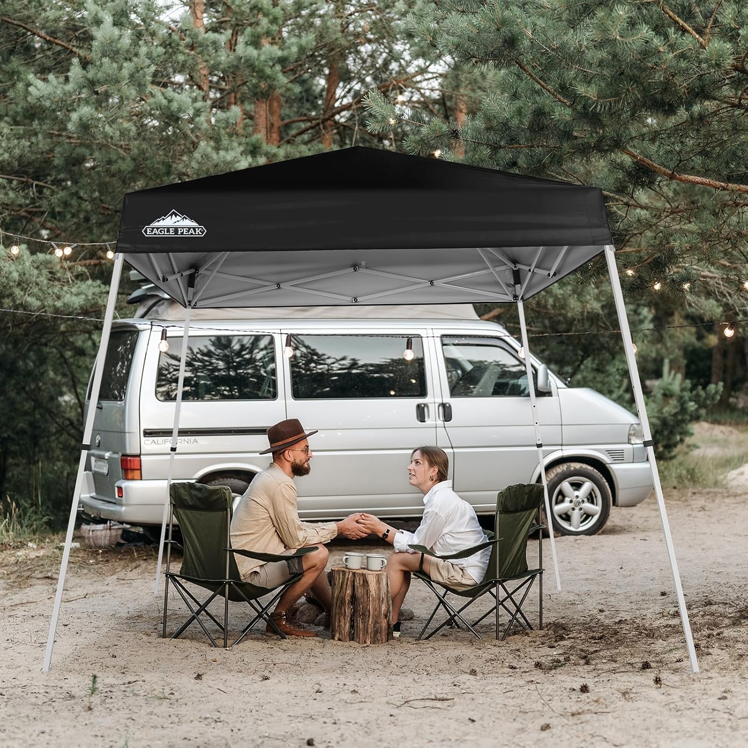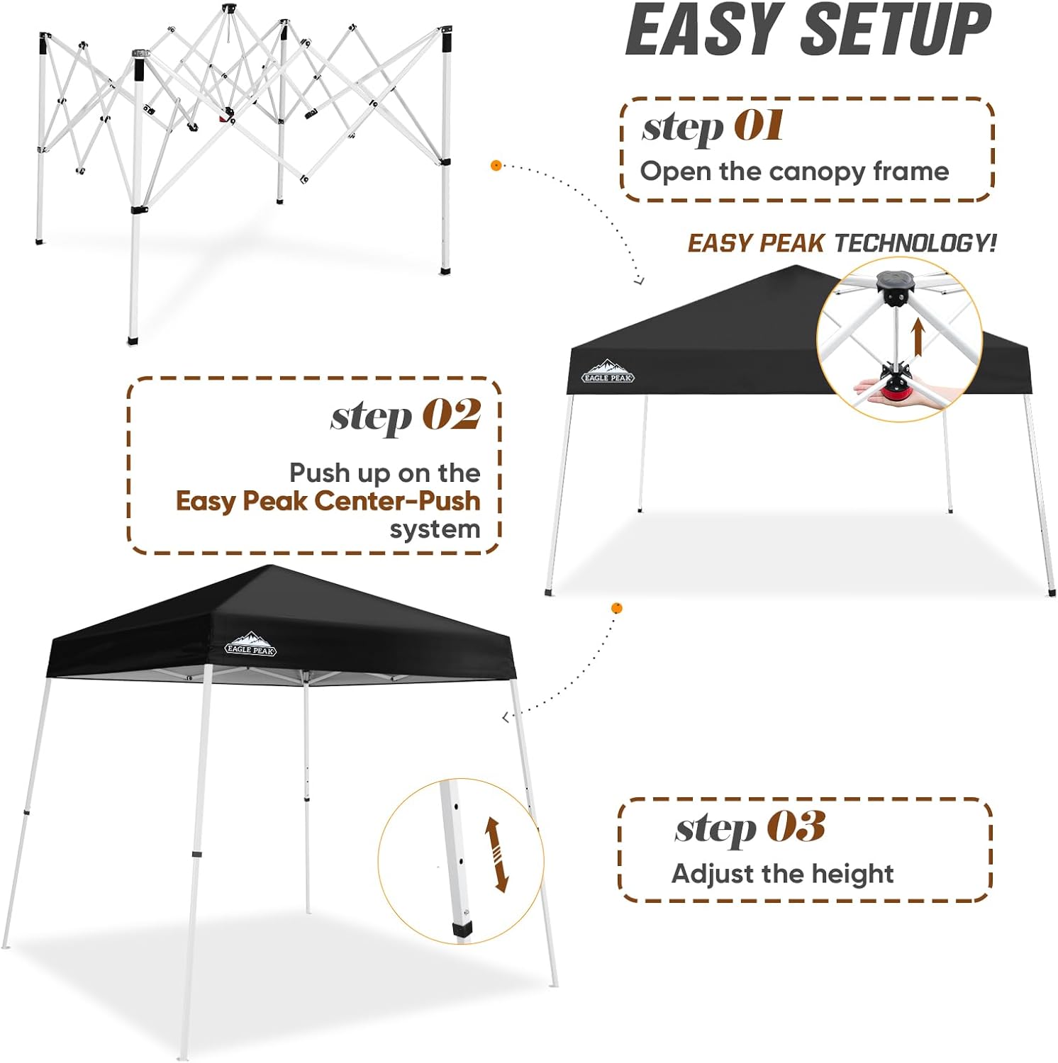 PREMIUM MATERIAL: The EAGLE PEAK slant leg canopy is made of high grade steel frame with powder coating to prevent rust, peeling and chipping. The top fabric is coated with upgrade silver coating inside, helps block 99.99% of harmful UV rays.