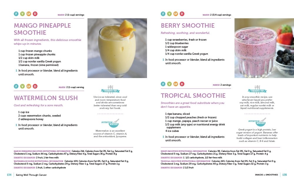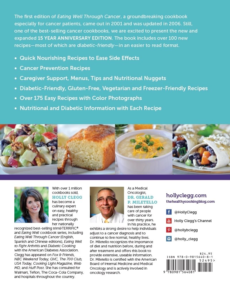 Best-selling cancer cookbook for cancer patients highlights. “What can I eat when going through cancer treatment?” This newly revised and expanded 15-year anniversary edition includes chapters on nourishing foods that are best tolerated to ease common side effects such as nausea, sore mouth and throat, taste changes, neutropenia and weight loss. With easy everyday recipes using familar ingredients, you’ll find this book an invaluable recipe resource for cancer prevention. Featured on The 700 Club, CBN.