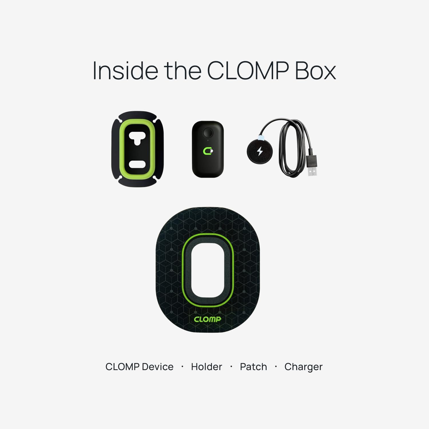 Your Complete Running Kit: Everything you need, all in one package. Clomp comes ready with the tracker, holder, charger, and thigh patches. Unpack, gear up, and experience the future of running today.