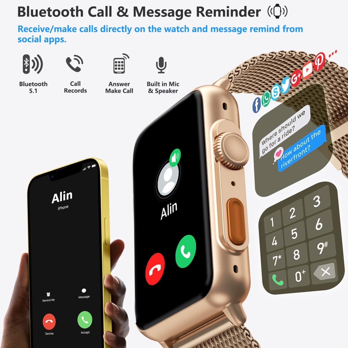 Built-in Mic and Speaker: Seamlessly connect via Bluetooth to effortlessly answer/make calls or activate your phone’s voice assistant directly from your smart watches. Moreover, this smartwatch ensures you stay in the loop with all your phone notifications from texts and calls to social media updates. Conveniently displayed right on your wrist.