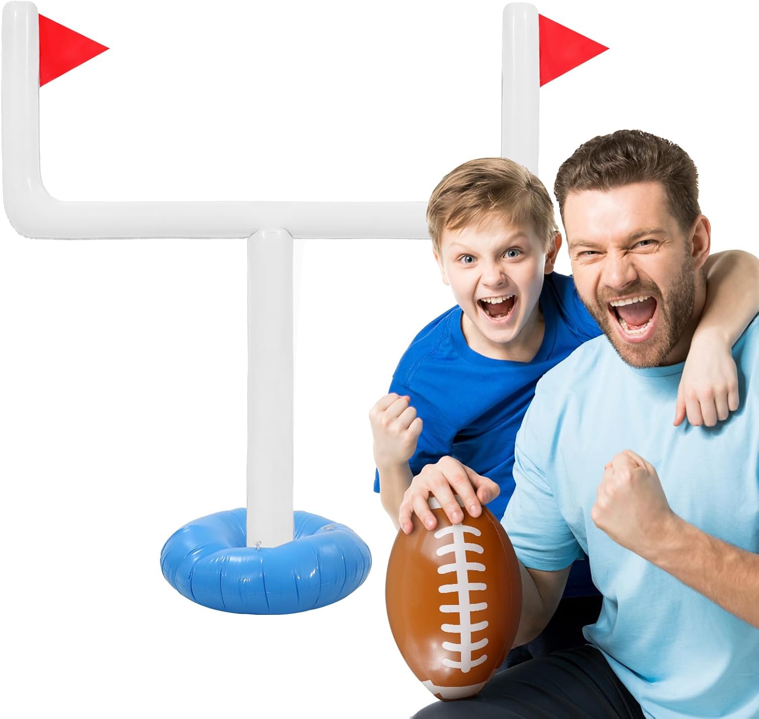 Easy to Inflate and Play: this football goal post set has a quick inflate valve that allows you to inflate it within minutes, and it provides a funny way of getting family and friend together, which can enhance your relationship