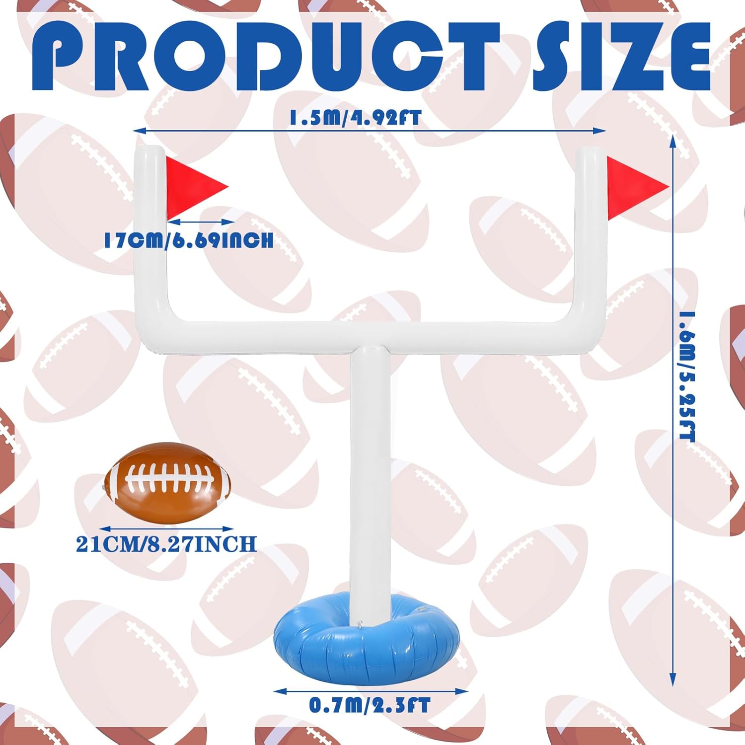 Suitable Size: the height of blow up football goal is about 54.33 inches/ 138 cm, large enough that allows more people to play; We also widened the bottom of the football goal to 17.72 inches/45 cm, which means you can add more water or sand and the football goal will be more stable