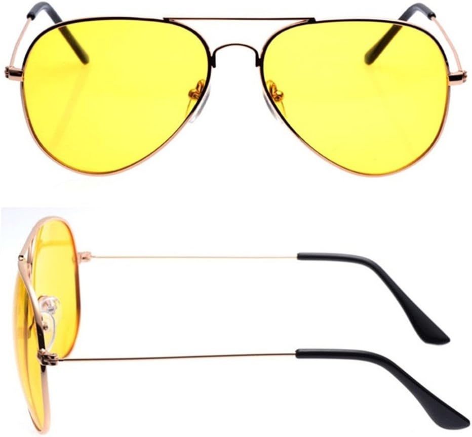 Classic aviator design provides the wide-field yellow lenses, which will keep eyesight more broad than the narrow lenses. The yellow lenses provide greater clarity in fog, haze, dark and other low-light conditions, which will improve your performance and reduce eyes fatigue.