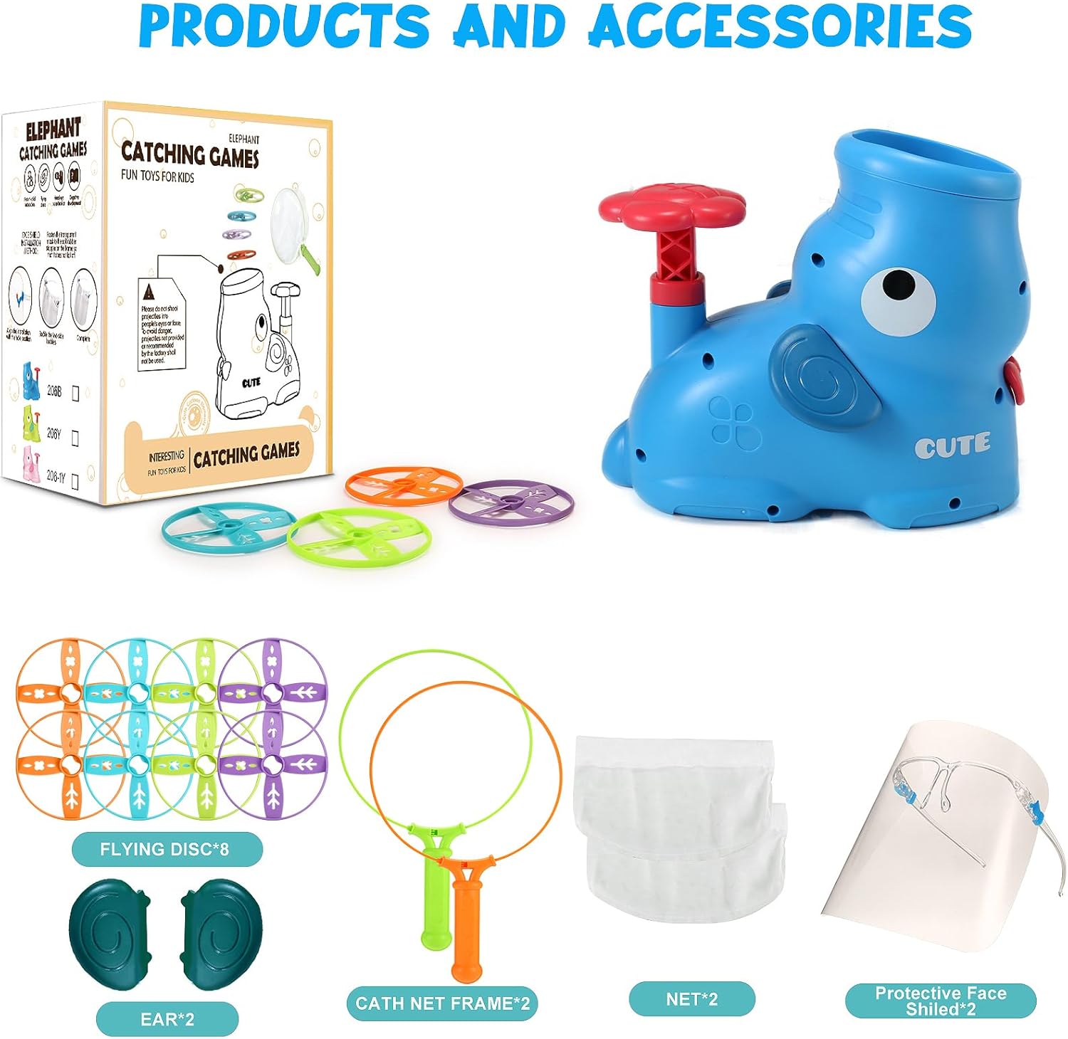 Elephants Game with Flying Disc: Different from traditional elephants game with butterflies, the outside sport game is very simple to play. Children just need to step on the launcher and the elephant’s mouth will launch flying disc, which children need to catch with a net, and children will have fun trying to chasing them. This game is perfect for young boys and girls who like to chase colored flying disc and is a great way to improve hand-eye coordination and reaction skills.