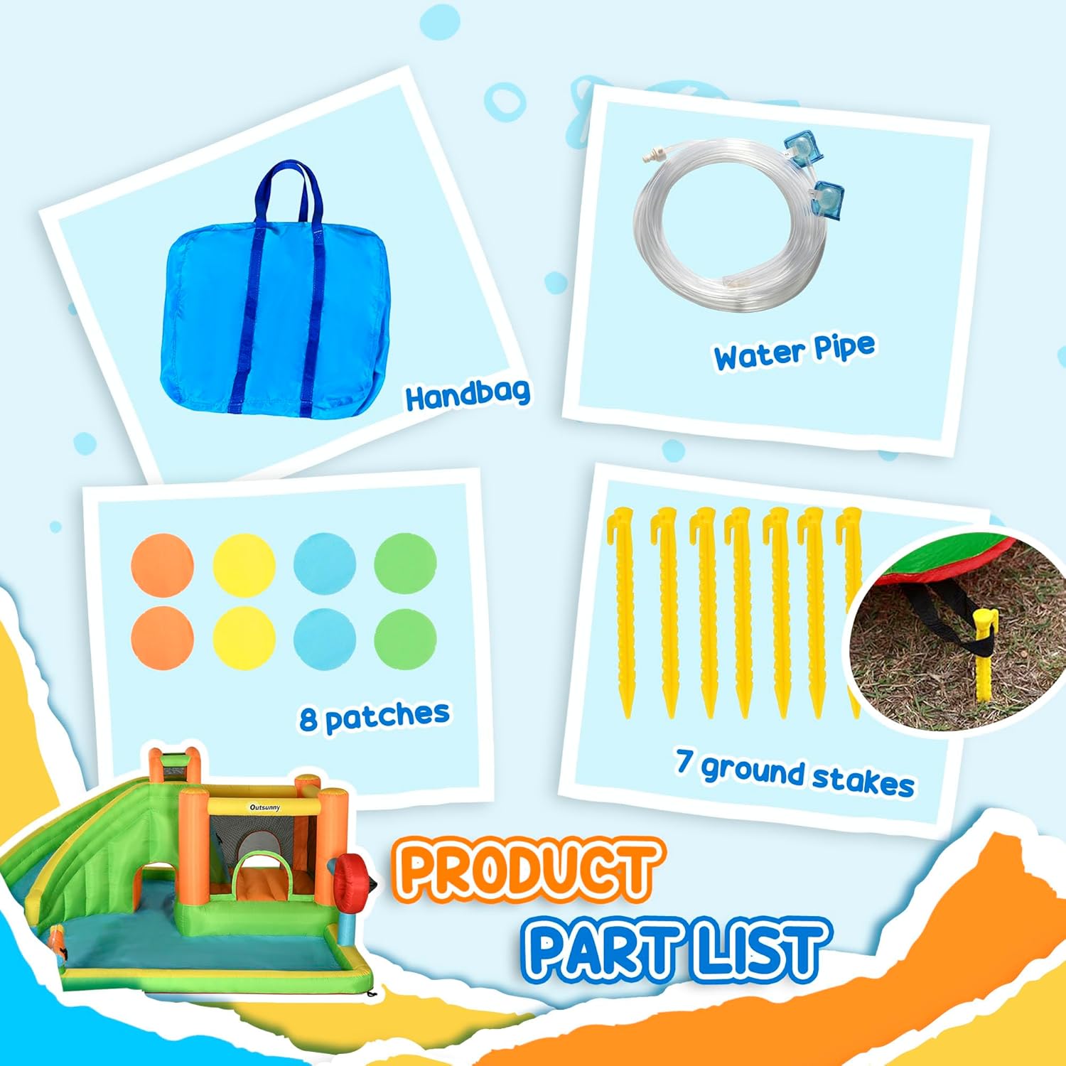 Outsunny 7-in-1 Backyard Inflatable Bounce House with Pool Sports, Water Gun, and More, Inflatable Water Slide for Kids with 2 Min. Inflation, Large Outdoor Game for Birthday Party Activities