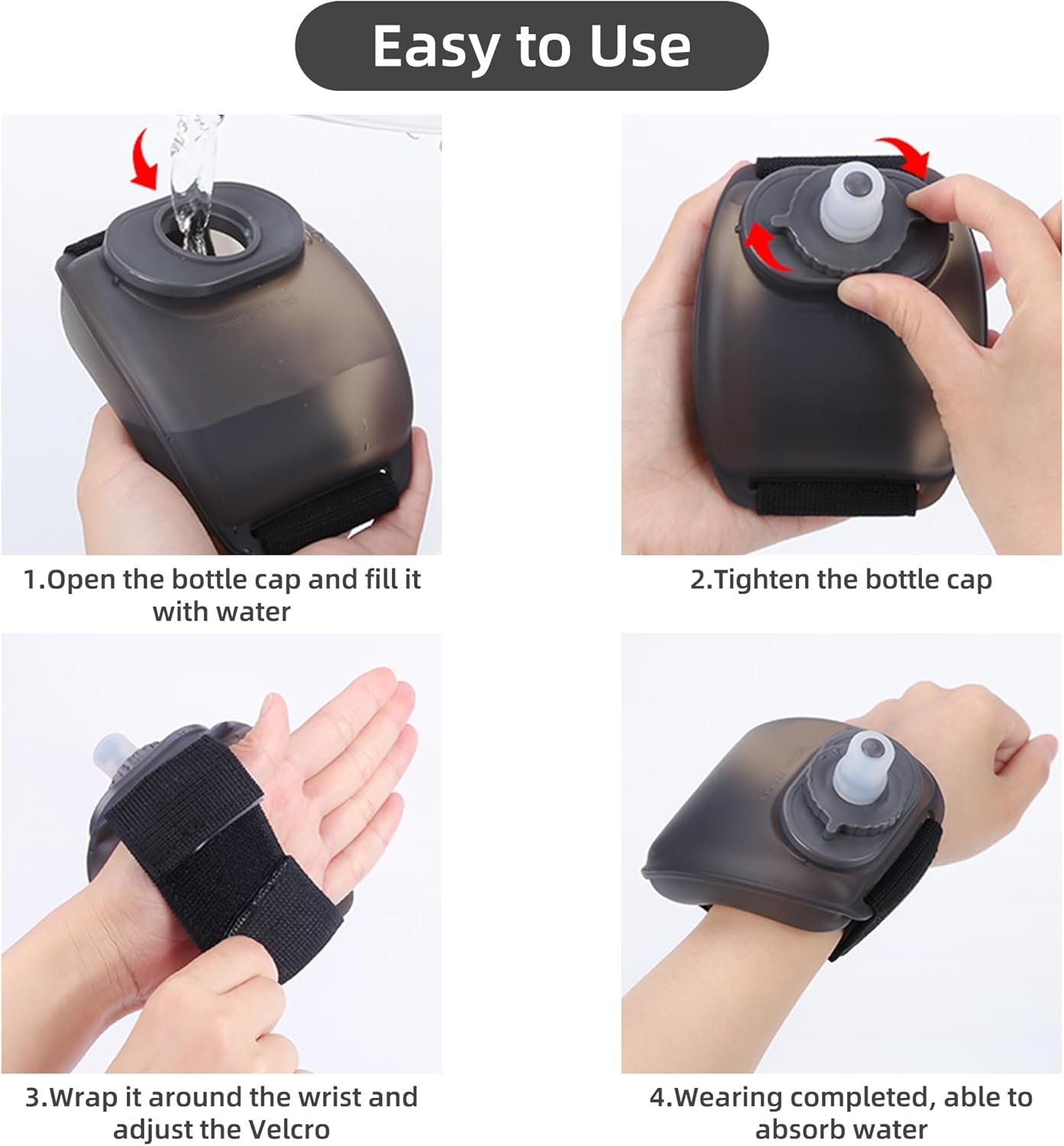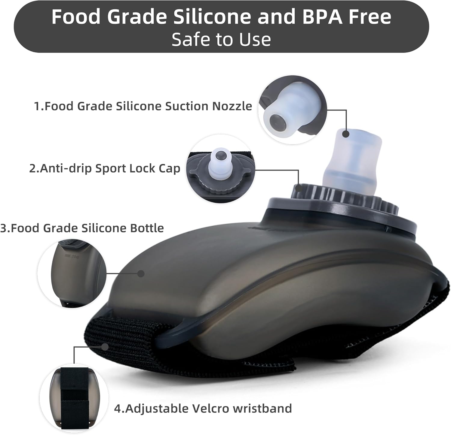 【Portable and Comfortable to Wear】Running water bottle is 1.4in high when full of water and only 0.4in high when empty, small size, no sense of weight, you can simply wear it on your wrist, allowing you to run without any burden.The 2in wide elastic wrist strap offers comfort and safety during exercise. Its design allows you to adjust the tightness for a customized and optimal fit.