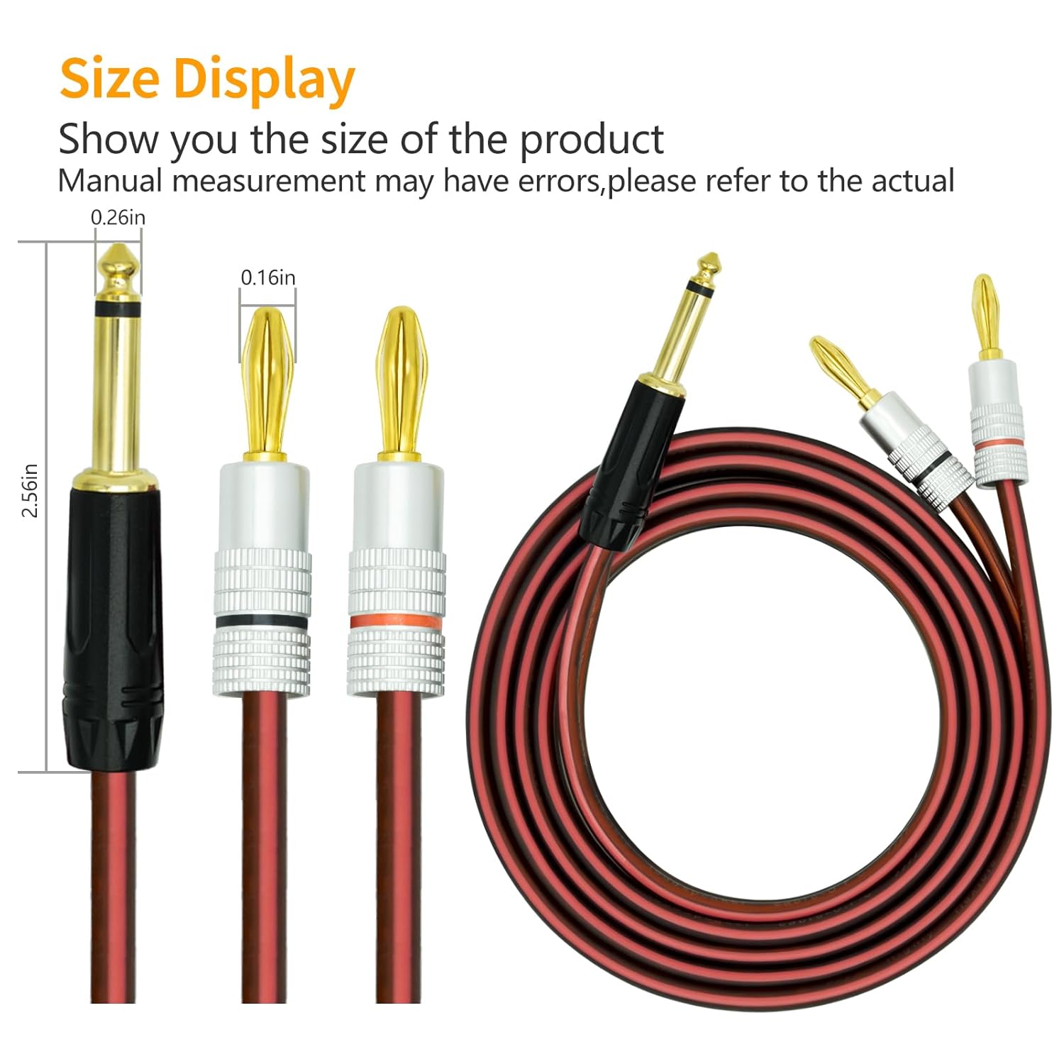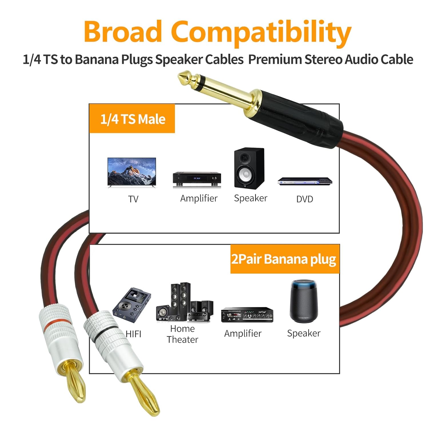 1/4 TS to Banana Plugs Speaker Cables 6.5mm Male Mono Adapter Speaker Audio Wire 14AWG OFC Hi-Fi Speaker Cable for DJ Application, Mixer 2 * 16.4FT