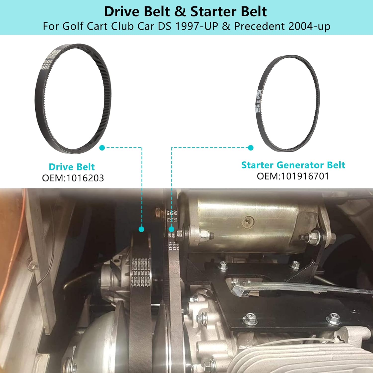 10L0L Golf Cart Tune Up Kit with Drive Belt & Starter Generator Belt for 1997-Up Club Car DS Gas Model W/ FE290 FE350 Kawasaki Engine Include Air Filter Oil Filter Fuel Filter Spark Plug