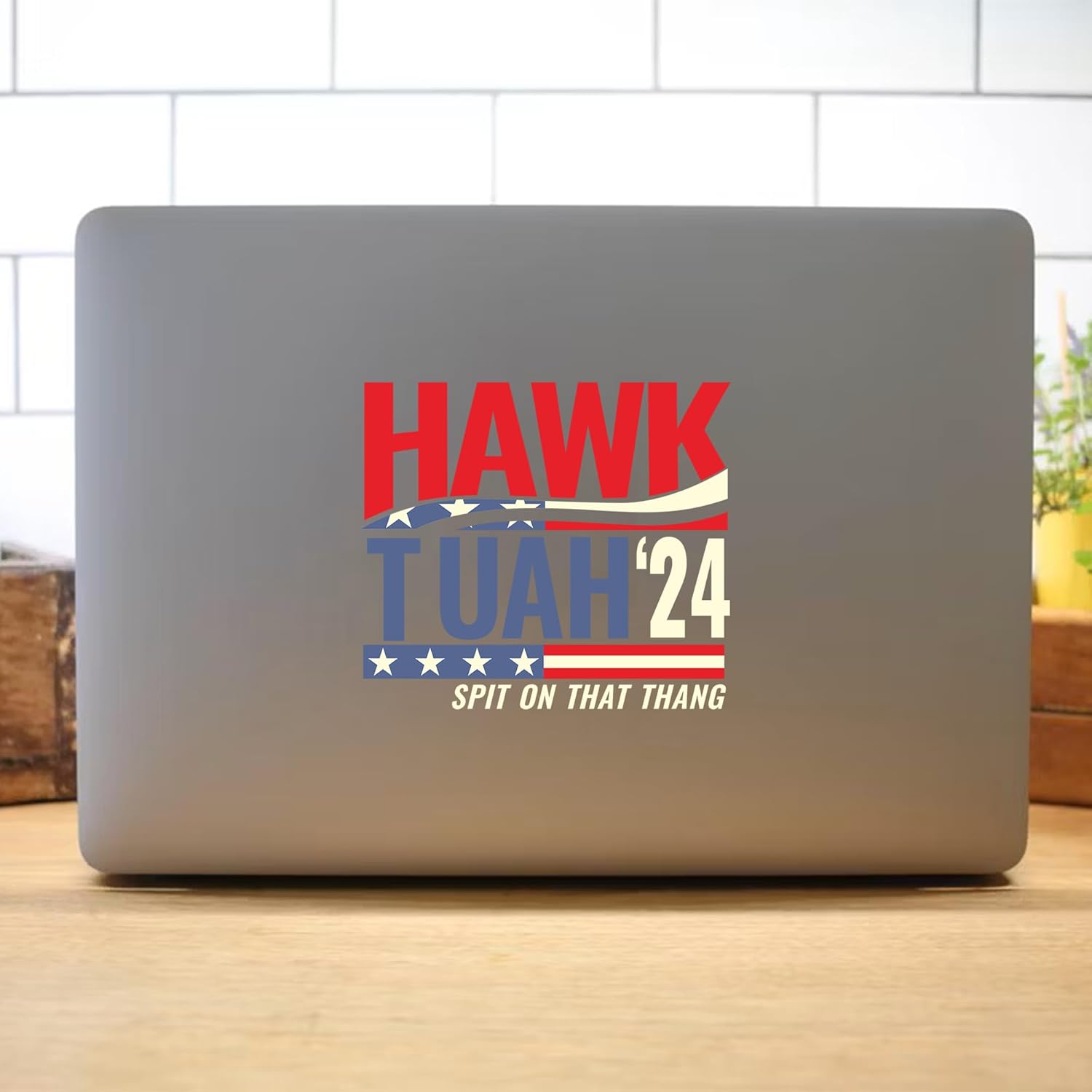 PACKAGE LIST: Each package contains 10 “Hawk Tuah Spit On That Thang” vinyl decals.