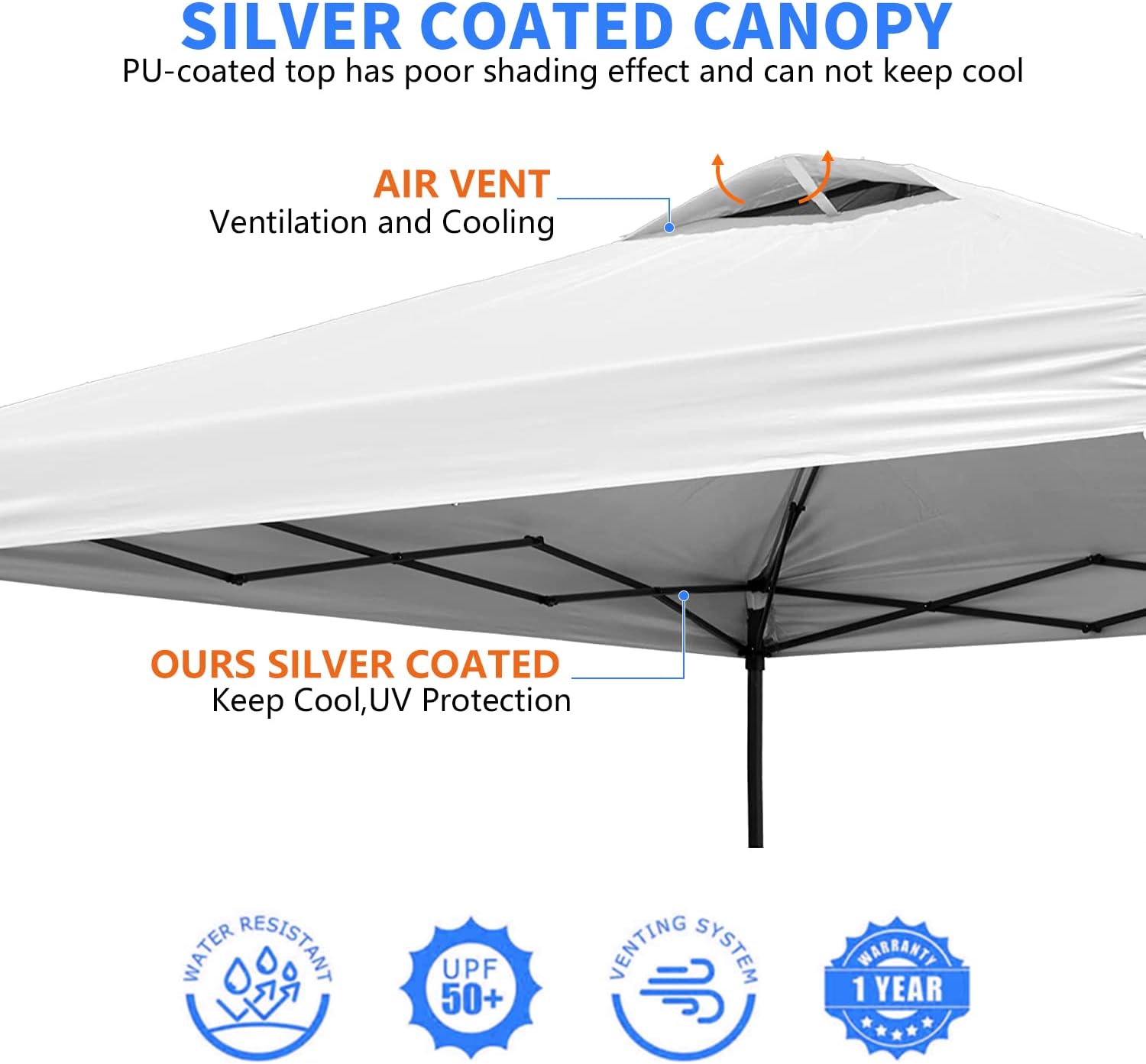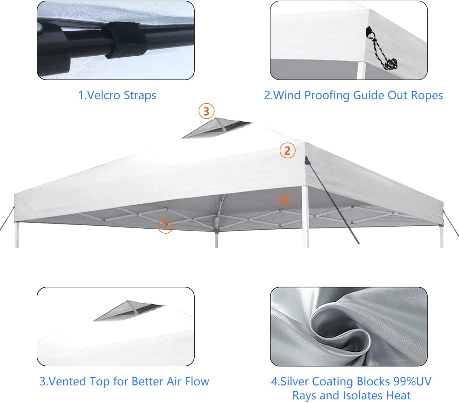 🌼🌼【Anti-UV and Waterproof Fabric】The canopy tent top was made of polyester and Silver Coating on the back provide great sun protection, which is water-resistant and can effectively block up to 95% of the suns UV Rays. Double-layer with double line sewing enhances durability and water resistance.