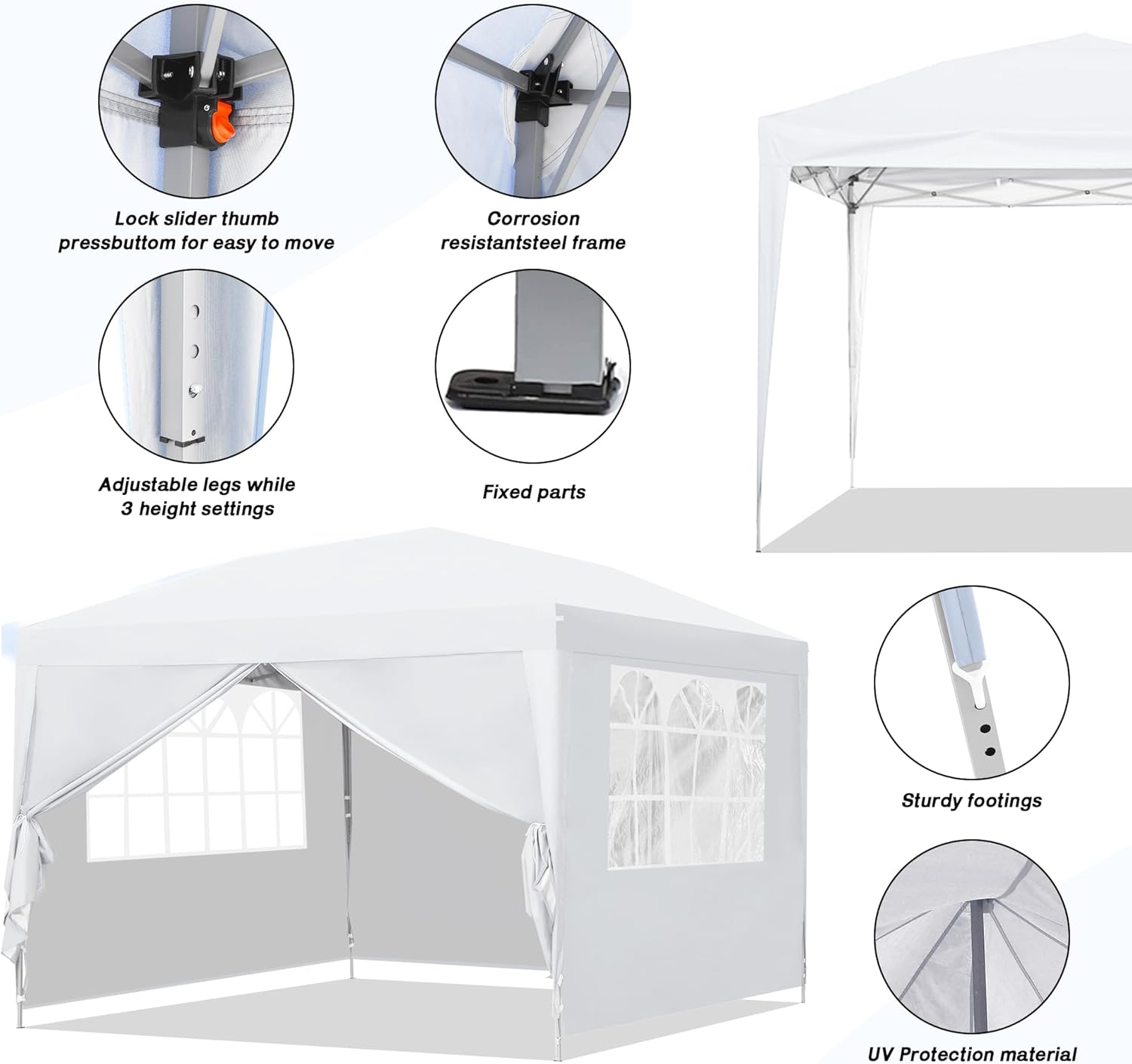 10x10ft Pop Up Canopy Tent with Sidewalls White Outdoor – Portable Adjustable Instant Gazebo Party Tent, Carrying Bag