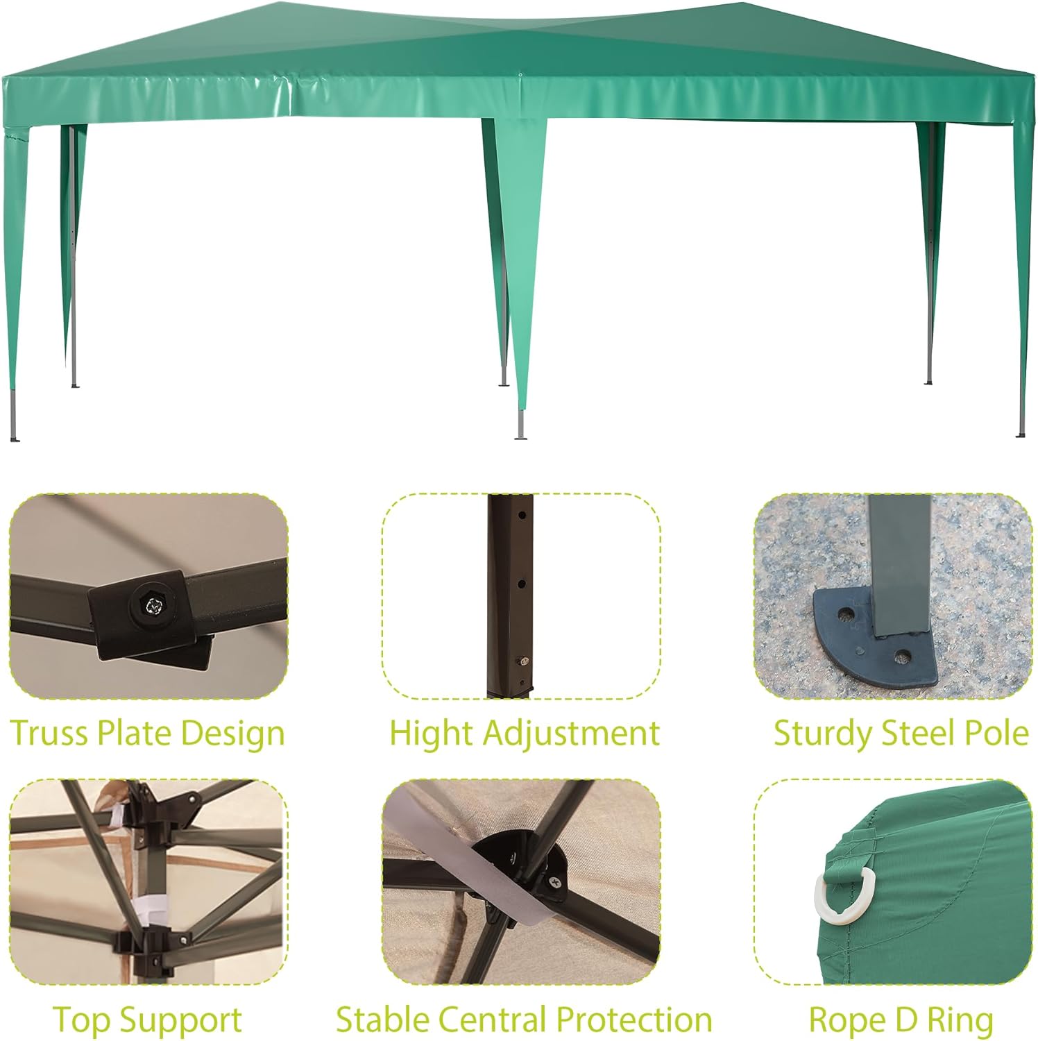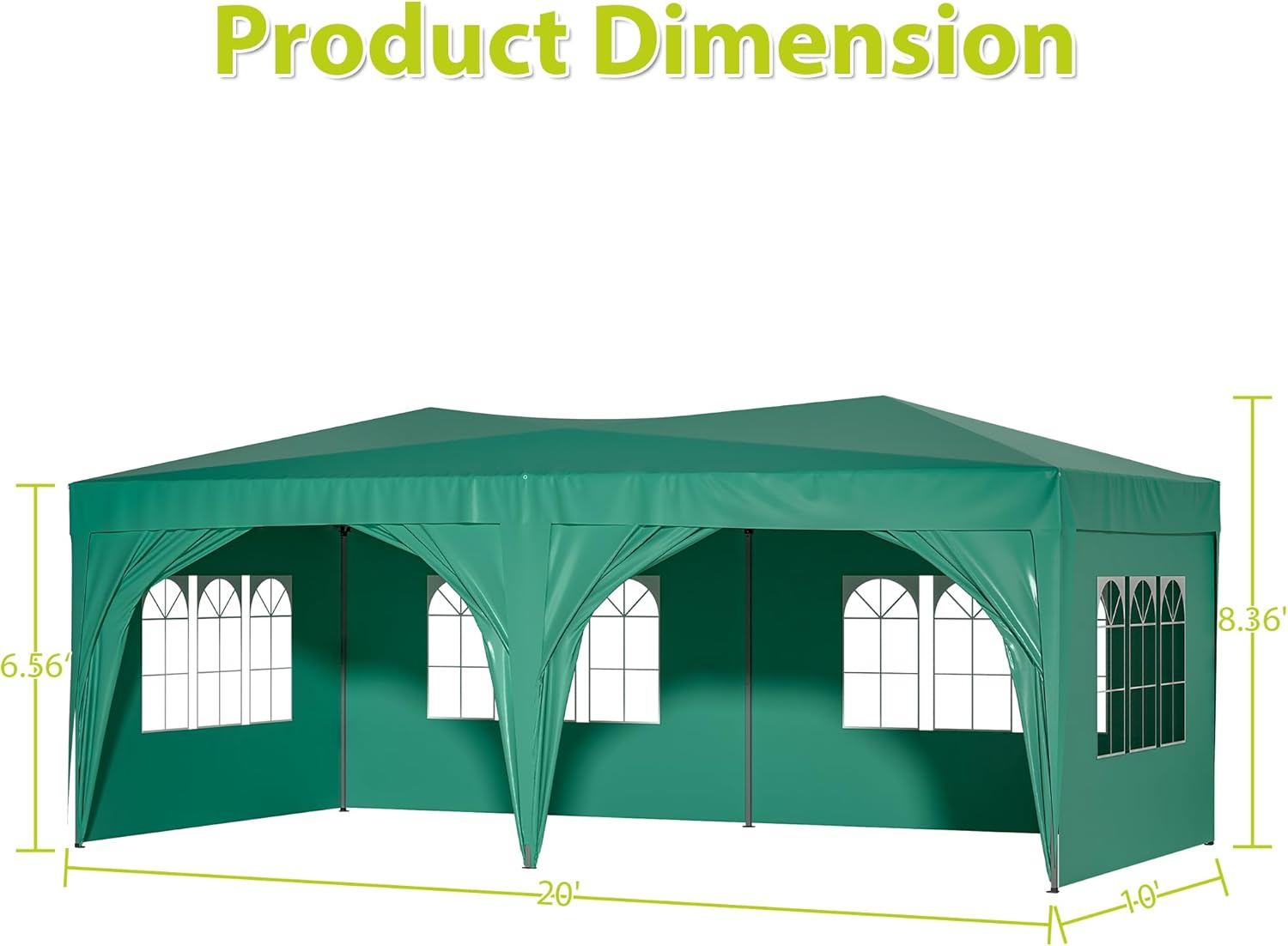 10’x20′ Pop Up Canopy with 6 Removable Sidewalls,Outdoor Portable Gazebo with Carry Bag,Party Event Tent for Wedding,Patio,Camping,Green