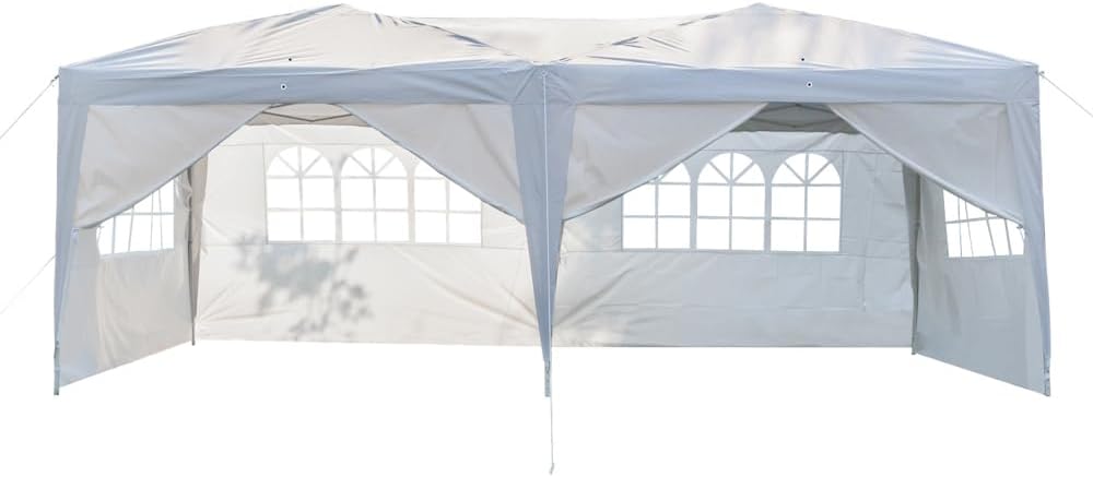 10x20FT White Pop Up Party Canopy Tent with 6 Sidewalls, Outdoor Commercial Canopy Tent for Events, Patio Gazebo Waterproof Canopy Tents with Carry Bag for Wedding Camping Event Garden