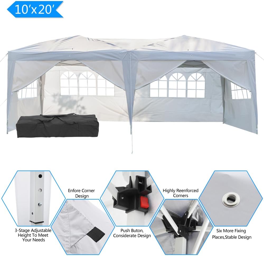 Quick and Easy Setup: Our 10x20FT canopy can be easily assembled and disassembled by 2-4 people in just a few minutes, Perfect for family gatherings, yard sales, craft fairs, outdoor birthday parties, weddings, the beach, and other outdoor events.
