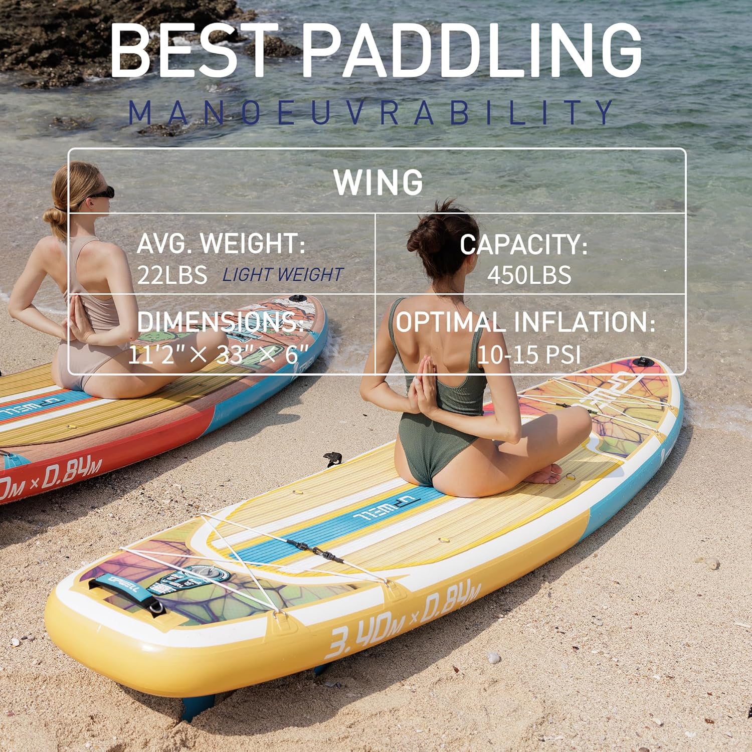 11’6″/11’2″/11’/10’6″ Inflatable Stand Up Paddle Board with SUP Accessories, Non-Slip Comfort Deck for Youth & Adults