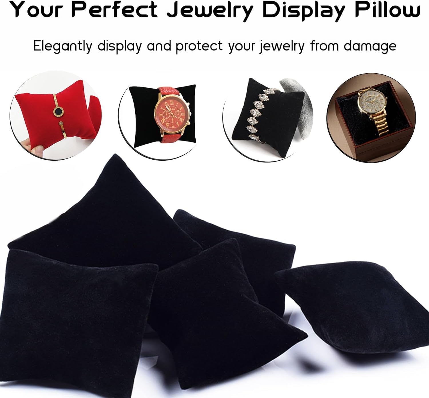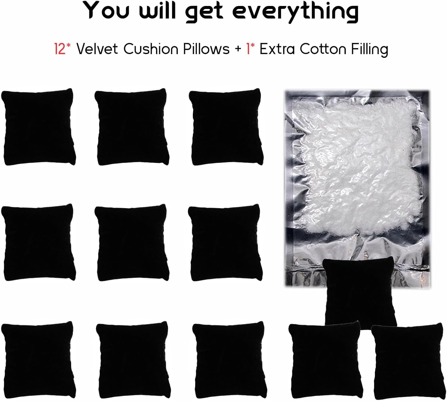12 Pack Velvet Watch Pillows with Extra silk floss Filling, 3.5” x 3.5” Black Velvet Jewelry Display, Pillow Bracelet Cushion for Jewelry Display and Gift Box