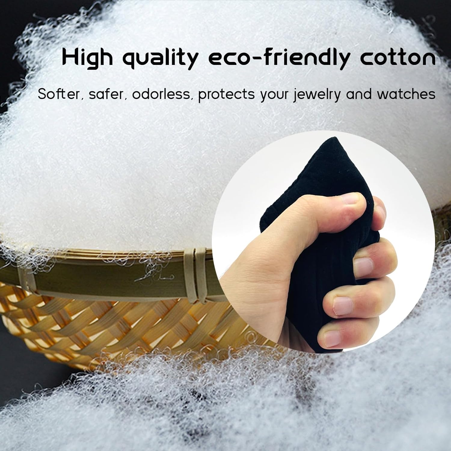 Perfect Jewellery Display: The Jewellery Pillow is made of fine velvet and high quality silk floss, allowing you to store and display your jewellery like a fashionista and preventing scratches and damage to your jewellery. Wide applicability: The watch pillows are designed with a filler opening and we provide extra silk floss filling, you can increase or decrease the filling to suit the size of your jewellery to make the pillow more suitable for you. Each cushion is a luxurious black color that allows you to show off your wares with style, an essential item when selling elegant accessories