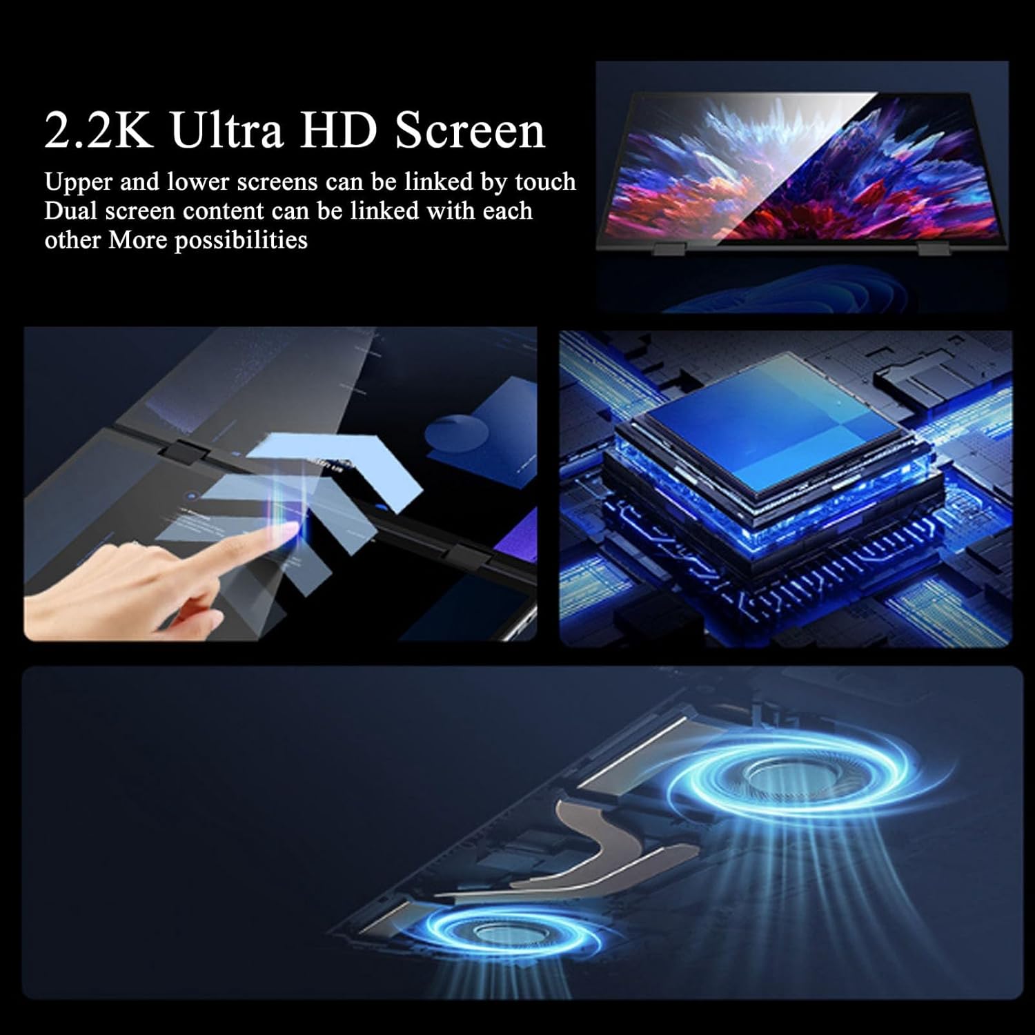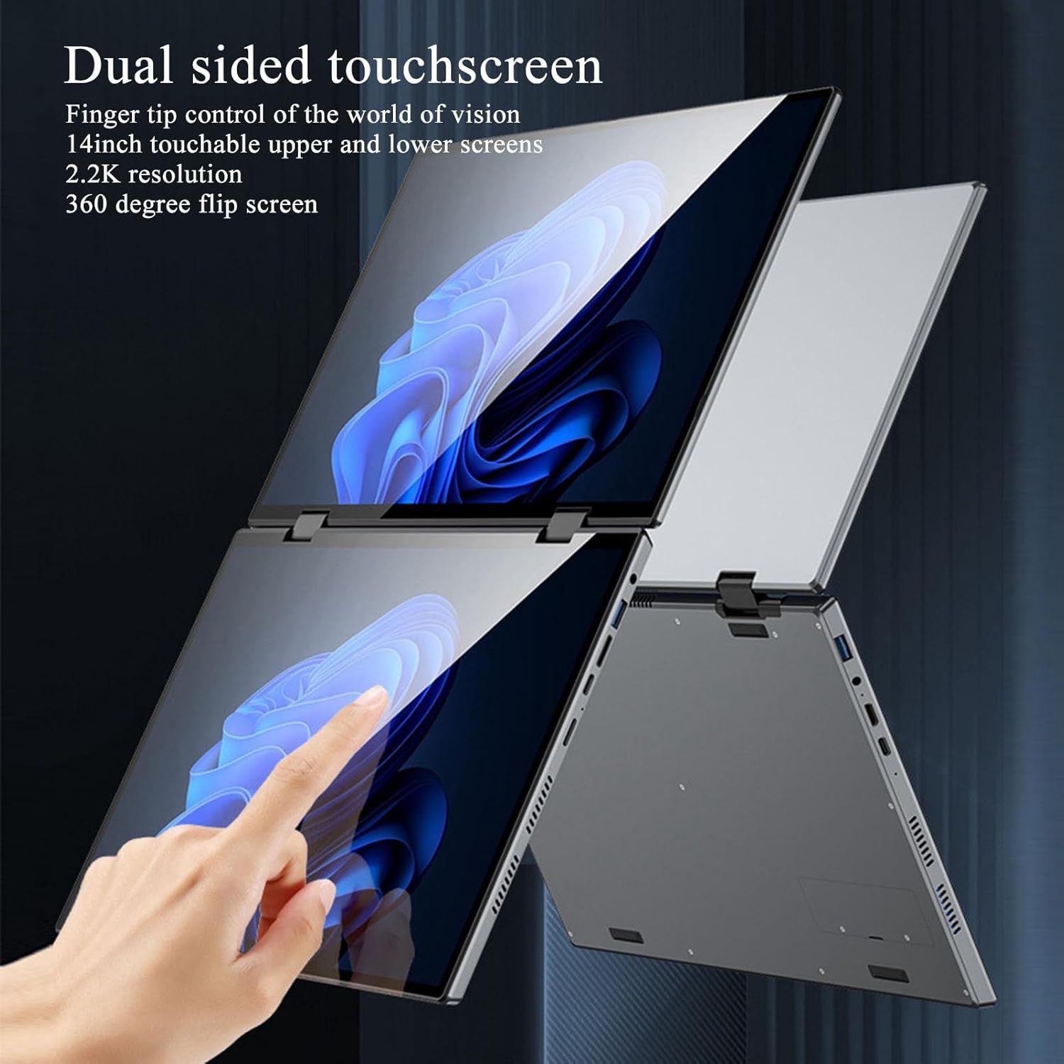 Screen: 2 x 14inch 2.2K HD 2240×1440, 10 Point Capacitive