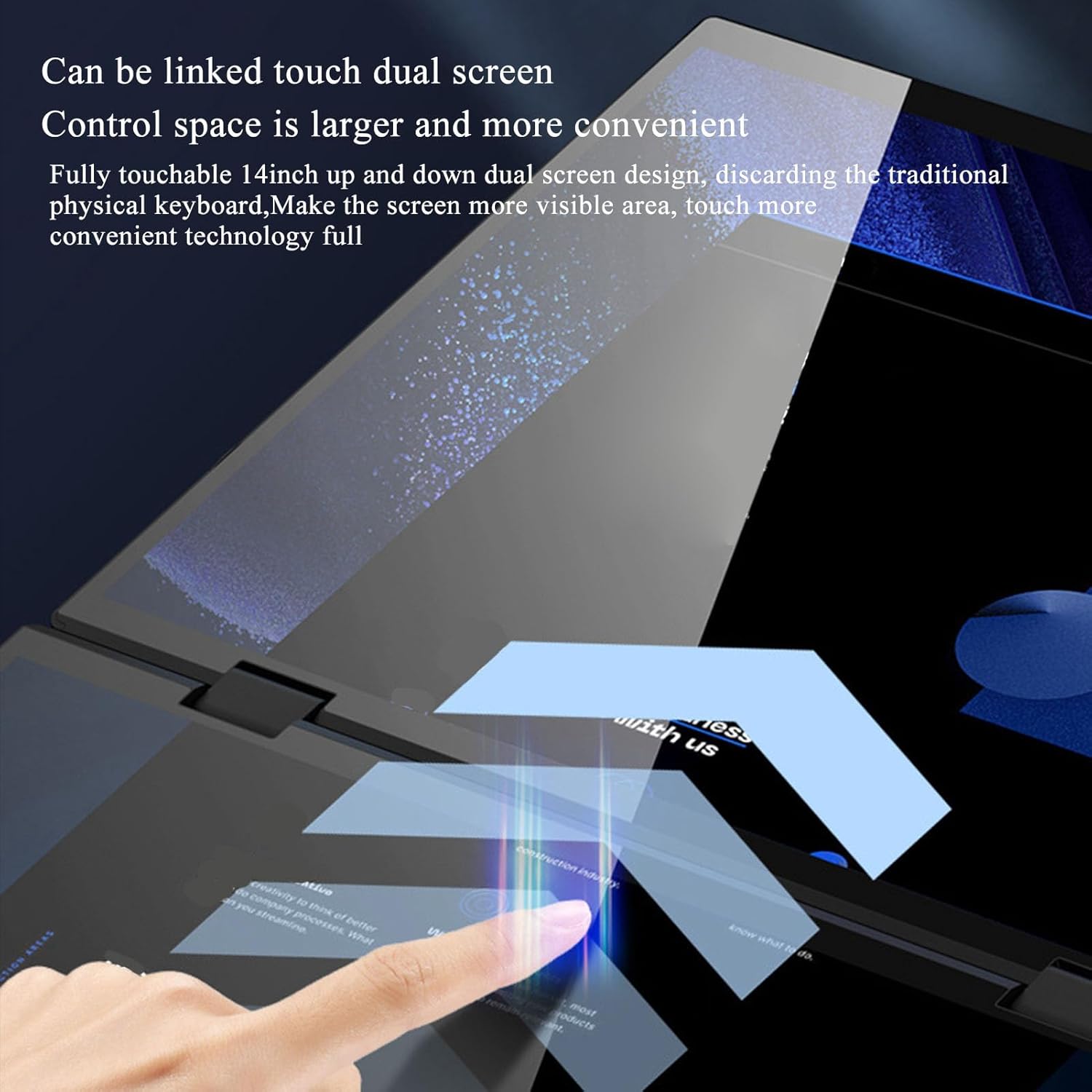 14 INCH DUAL SCREEN: Double sided touchable large screen, linkage and efficiency, 14inch dual screen, interconnection and interaction, larger operating area.