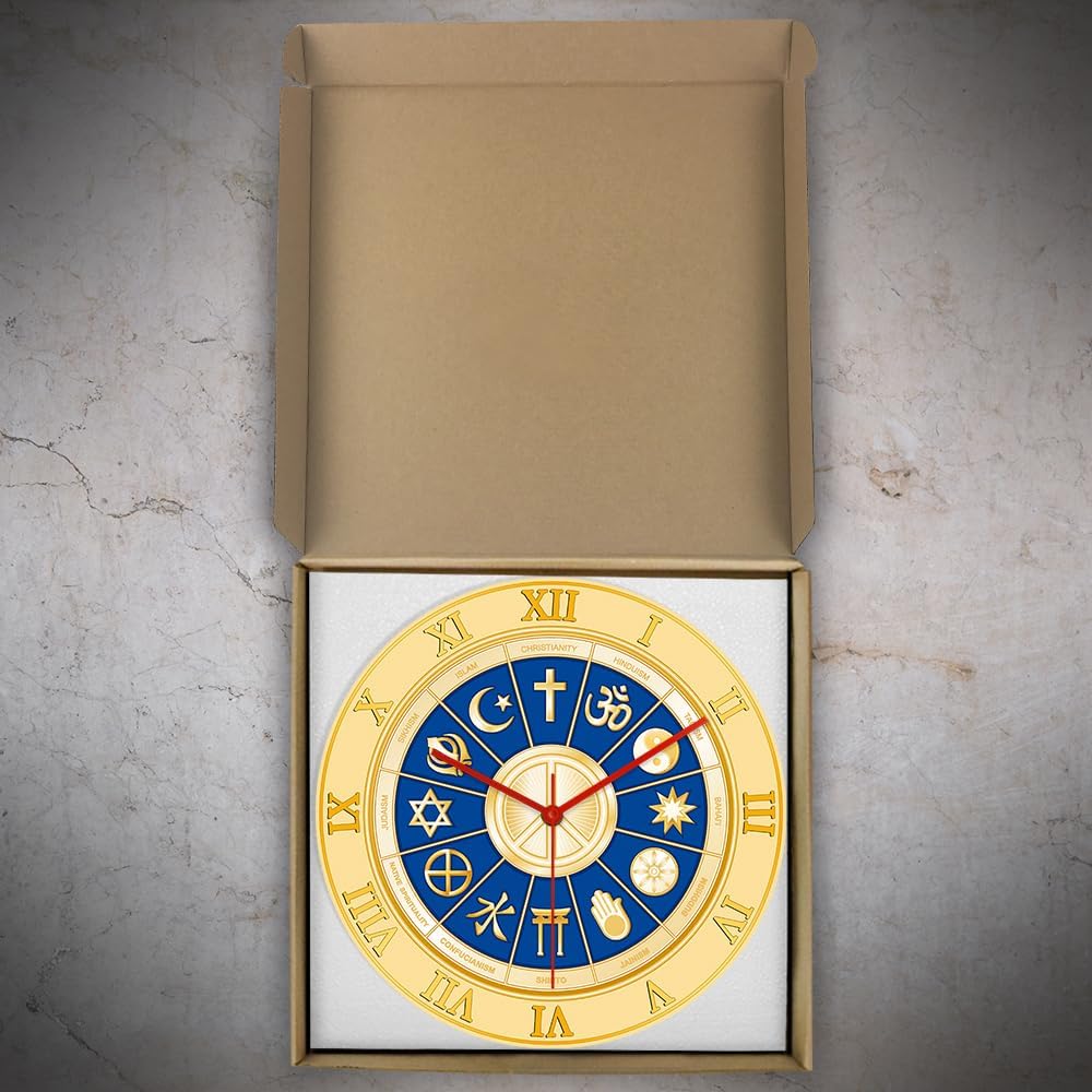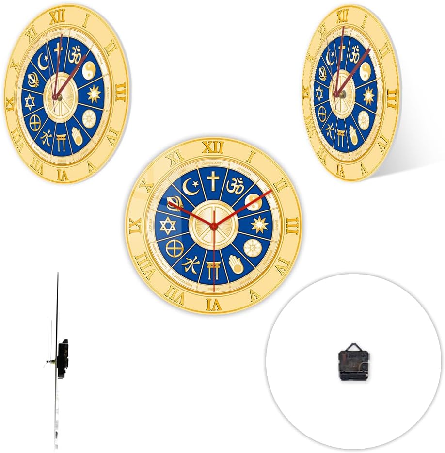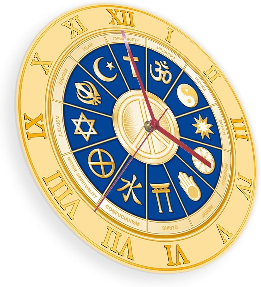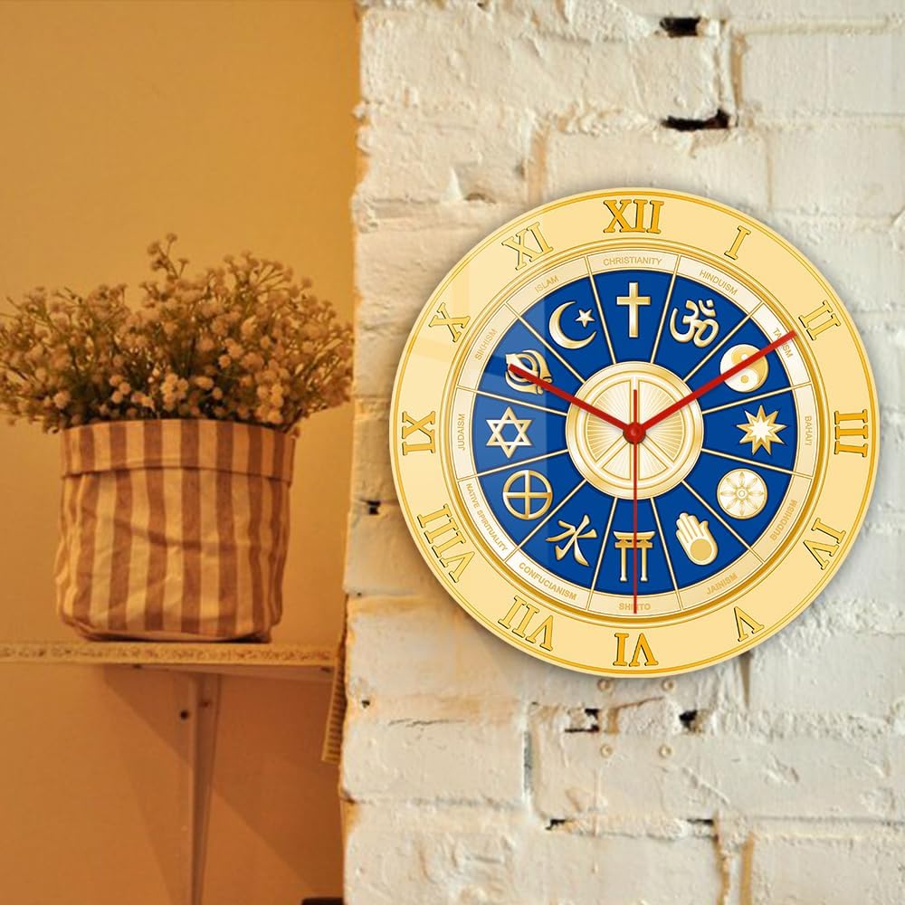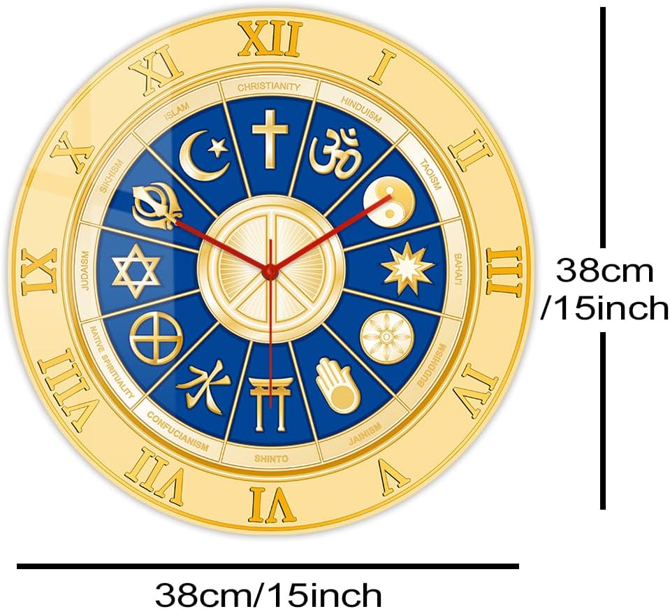 15 Inch Peace Symbol with International World Religion Decorative Wall Clock, Silent Quartz Non Ticking Battery Operated Clock Watch Hippie Wall Art Clock for Entrepreneur Room Home Office