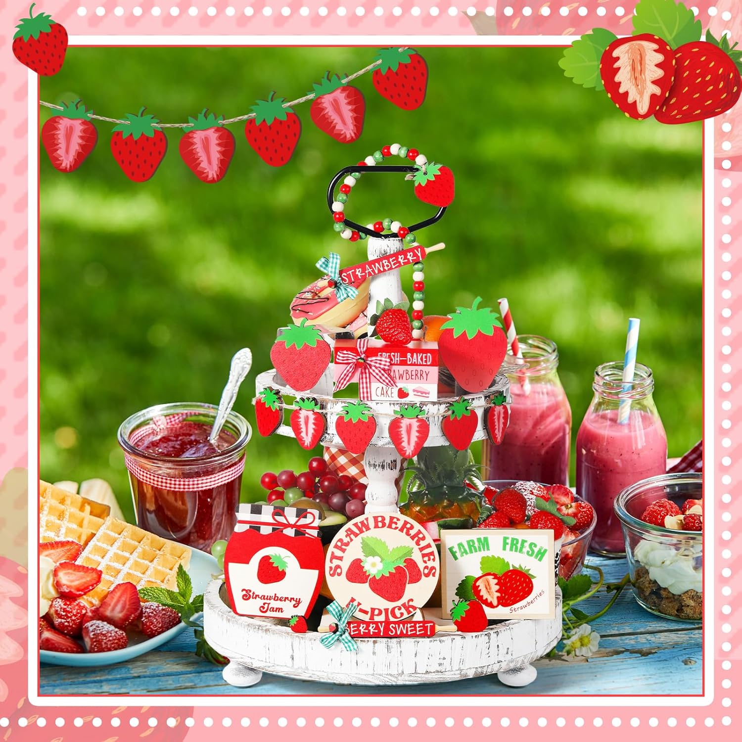 Strawberry Theme Design: the summer tiered tray decoration with delicate strawberry patterns and text design, strawberry wood bead garland cute and vivid, which can create special atmosphere for your home, adding fresh style to your space