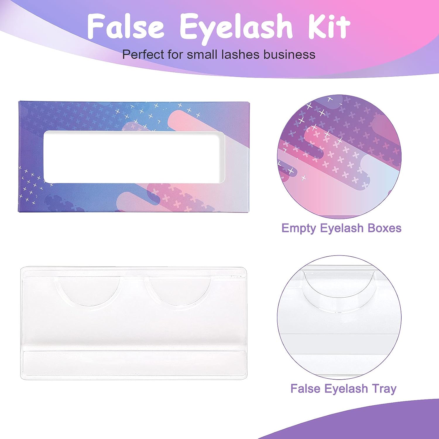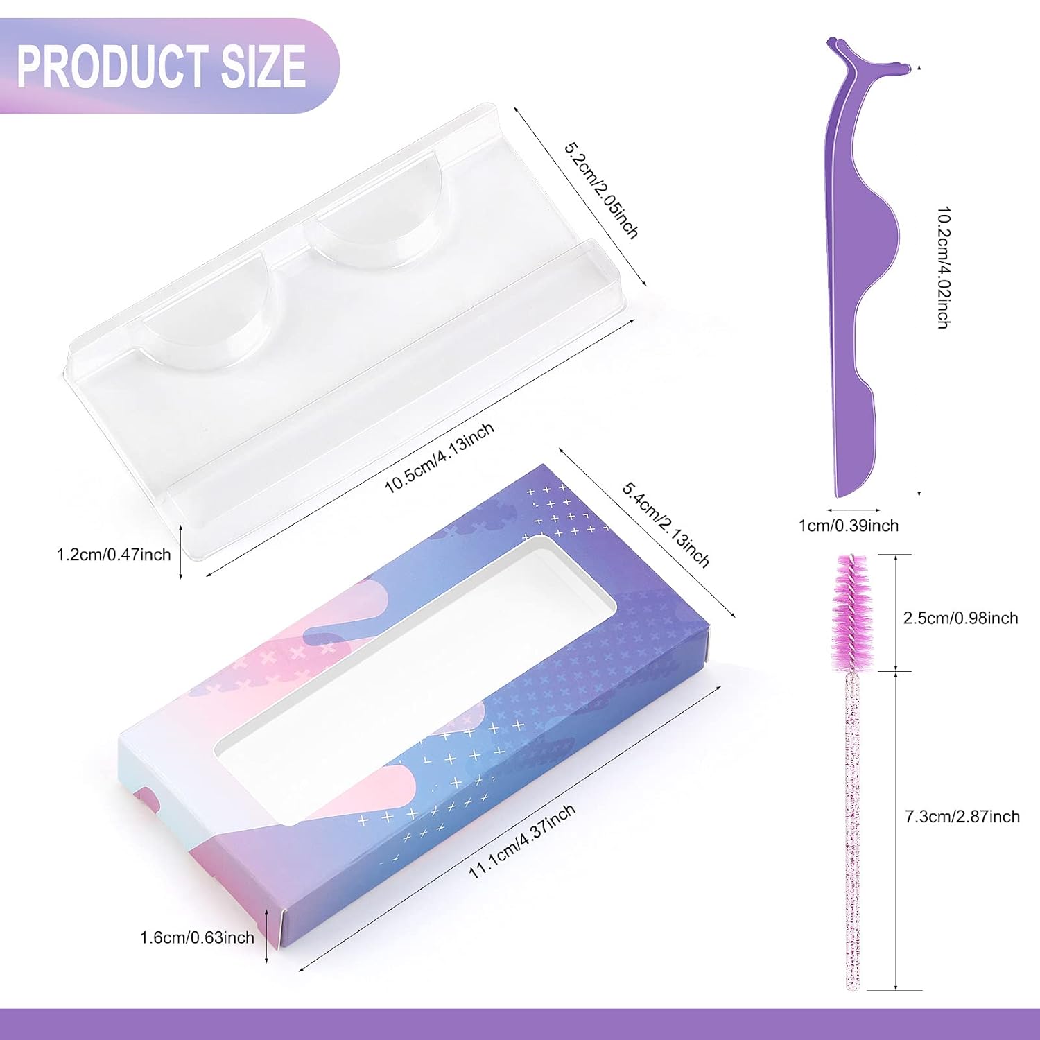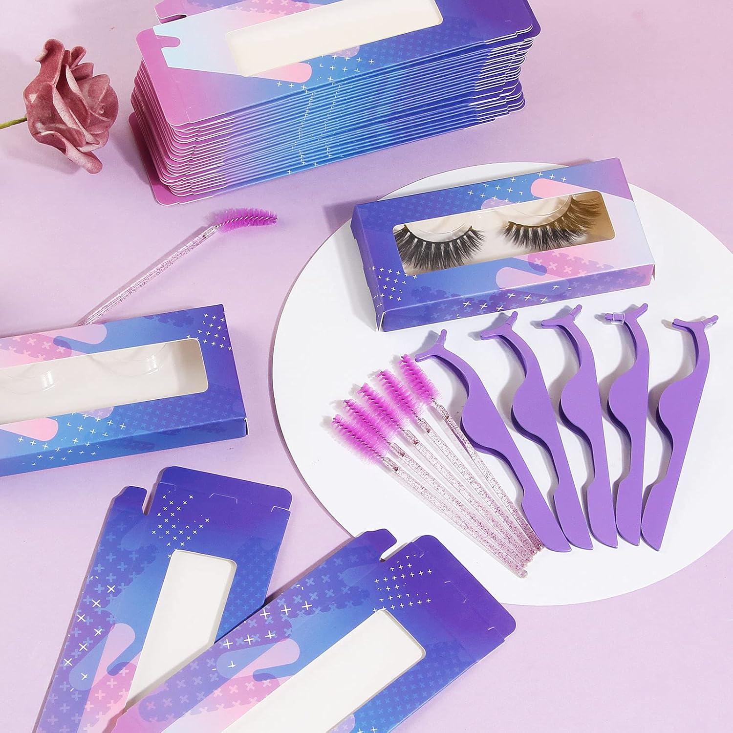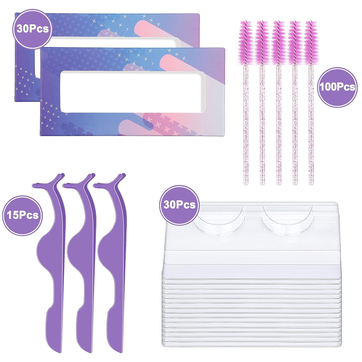 175 Pieces Lash Packaging Wholesale, Include 30 Empty Eyelashes Packaging Box, 30 False Lash Trays, 15 Eyelash Tweezers and 100 Eyelash Brush Mascara Wands Disposable (Purple)