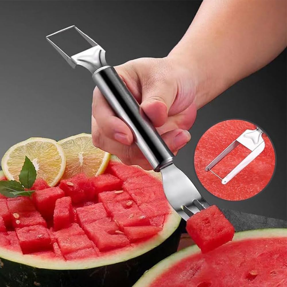 2-in-1 Stainless Steel Fruit Cutter, 2024 Portable Watermelon Fork Slicer Cutter Melon Cube Cutter, Watermelon Fork Slicer Cutter Slicer Tool, Quickly Fruit Forks Slicer for Home Kitchen Gadget(2PCS)