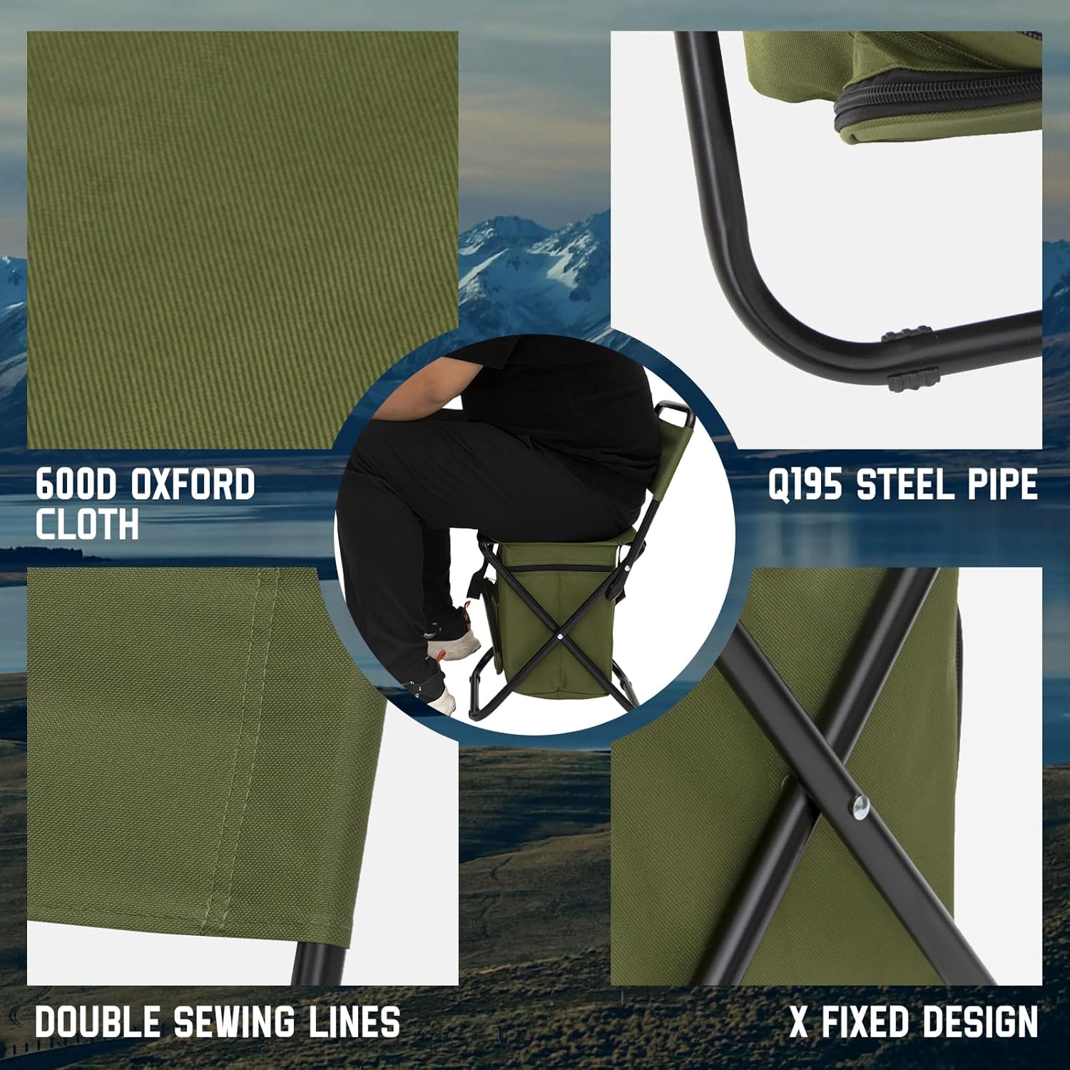 2 Pack Small Fishing Chair with Cooler Bag, Lightweight Camping Chair Compact Fishing Stool with Backrest for RV Hiking Travel, Hunting, Ice Fishing Gifts Gear for Men, Supports 265 lbs