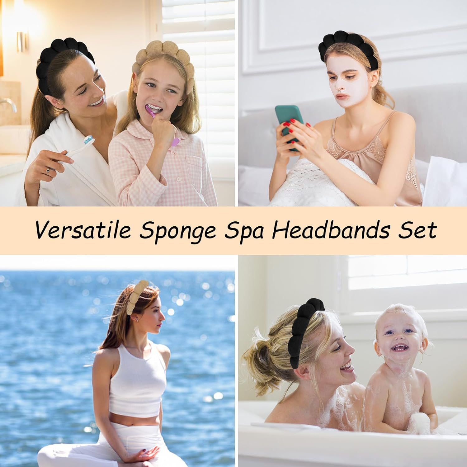 [Soft & Comfortable] The spa headband hairband is made of high-quality sponge and terry cloth fabric, the sponge lining makes it extremely soft, cushy, and intimate to your skin. The spa headband for women are functional for washing face, makeup, mask routine, yoga, taking shower, birthday spa party and sleepover party.