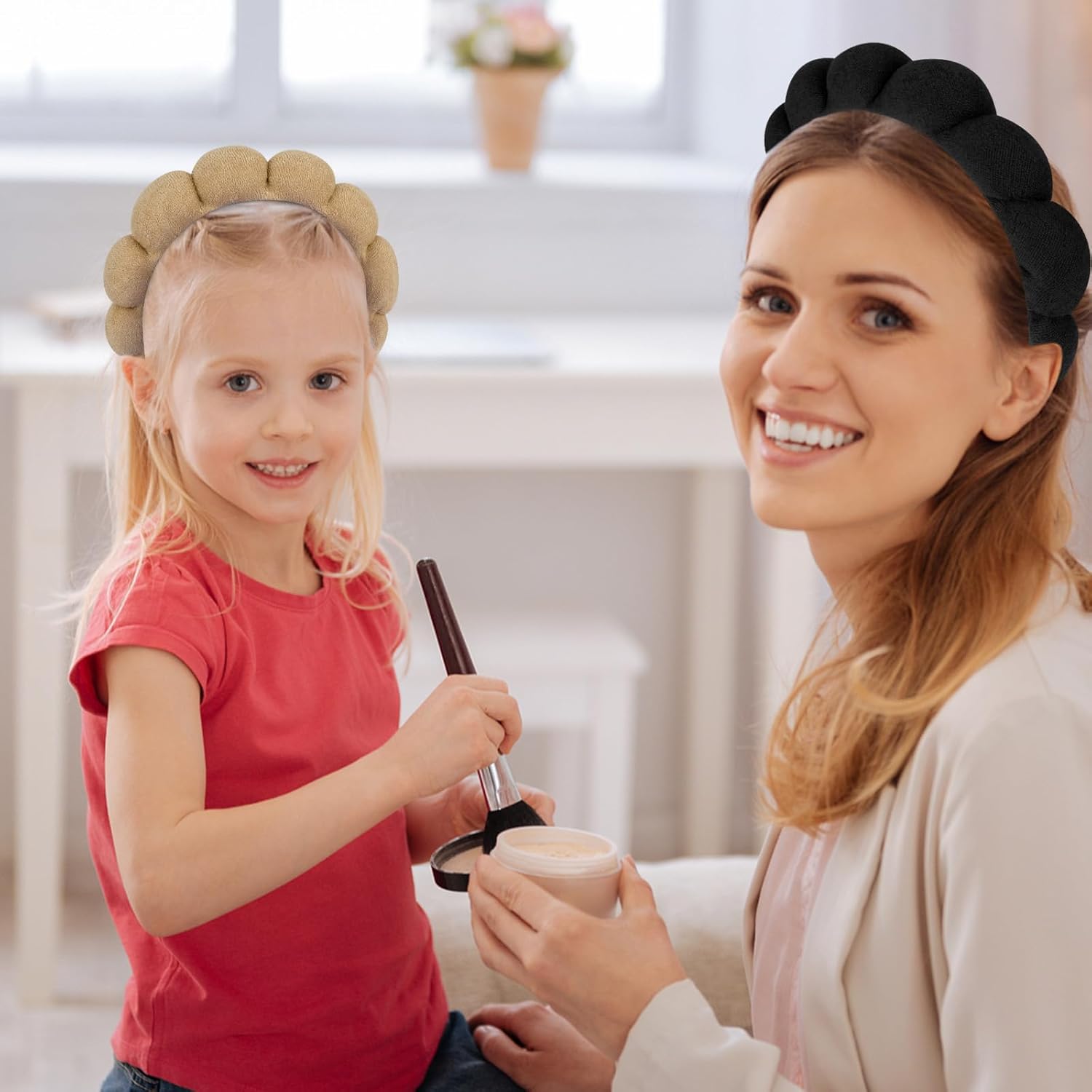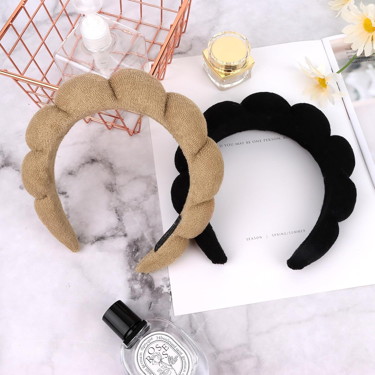 2 PCS Puffy Spa Headband for Women Sponge Headbands for Girls Terry Towel Cloth Fabric Head Band for Skincare,Makeup Removal,Face Washing,Facial Mask,Shower,Hair Accessories(Black&Light Coffee)